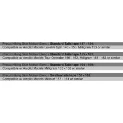- Precut Hiking Skin Mohair Blend / Standard Tailshape 147 – 154 Compatible w/ Amplid Models Lovelife Split 148 – 153, Milligram 153 or similar (w/ Butterfly clips)