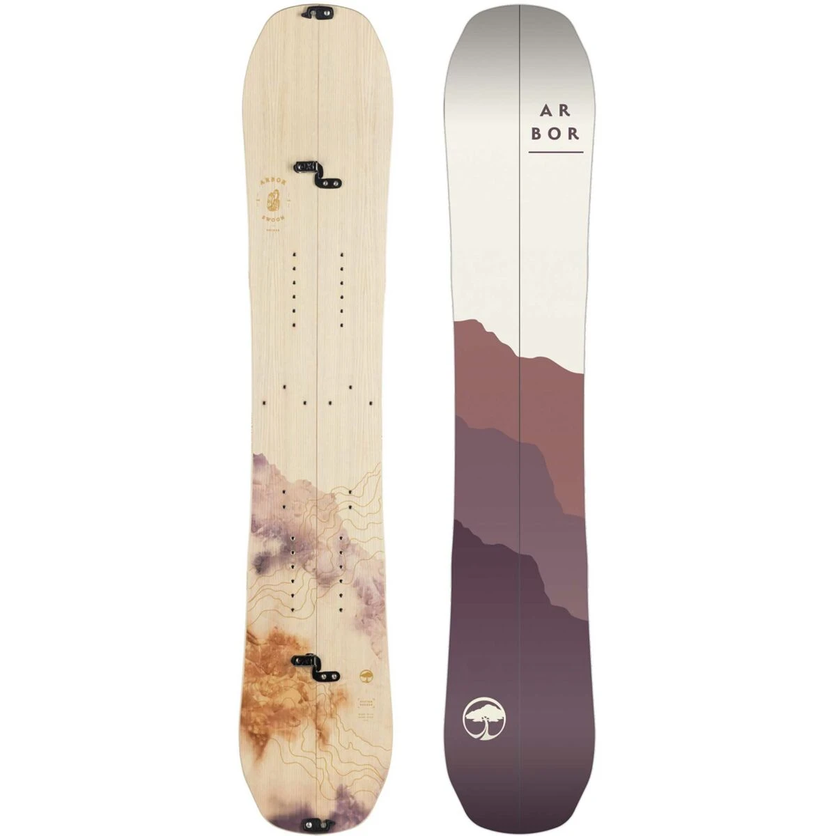 Arbor Swoon Split. Dankzij de shape van dit board krijgen de dames een splitboard dat zich goed houdt op hoge snelheden en maximale float creëert. Een high-end allround splitboard met een twin shape en medium flex. De Swoon is gemaakt om zonder grenzen op- en off-piste te gebruiken. Het board is uitgerust met het Rocker Systeem. Float en draaigemak zijn de codewoorden. Genoeg grip op ijzige pistes door de Grip Tech van Arbor. Door de verstevigingen houdt dit board zich ook goed op hogere snelheden, perfect voor de dames met meer ervaring!