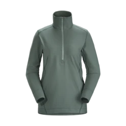 De Rho LT is gemaakt van een geborsteld mix van Polyester stof met stretch en termische regulering. De zip neck geeft een comfortabel gevoel op de huid en heeft een vrouwelijke fit. Plat gestikte naden minimaliseren irritatie en de iets opstaande kraag geeft extra warmte. De rits is makkelijk te openen voor ventilatie.