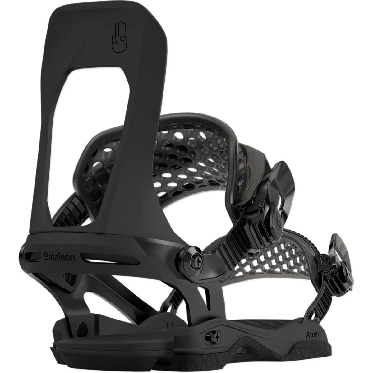 De Bataleon Atom is hun vlaggenschip. Gebouwd op het Asymwrap chassis voor een surfy gevoel en ruimte voor wat tweakability. De gebruikte materialen daarentegen zorgen voor de respons. Carbon infused highback en baseplate. Bataleon maakt gebruik van AuxTech, straps die strechen in alle richtingen. Een vrij stijve en goed verstelbare binding die respons geeft voor de grote kickers maar toch surfy aanvoelt op de betere pow-dagen.