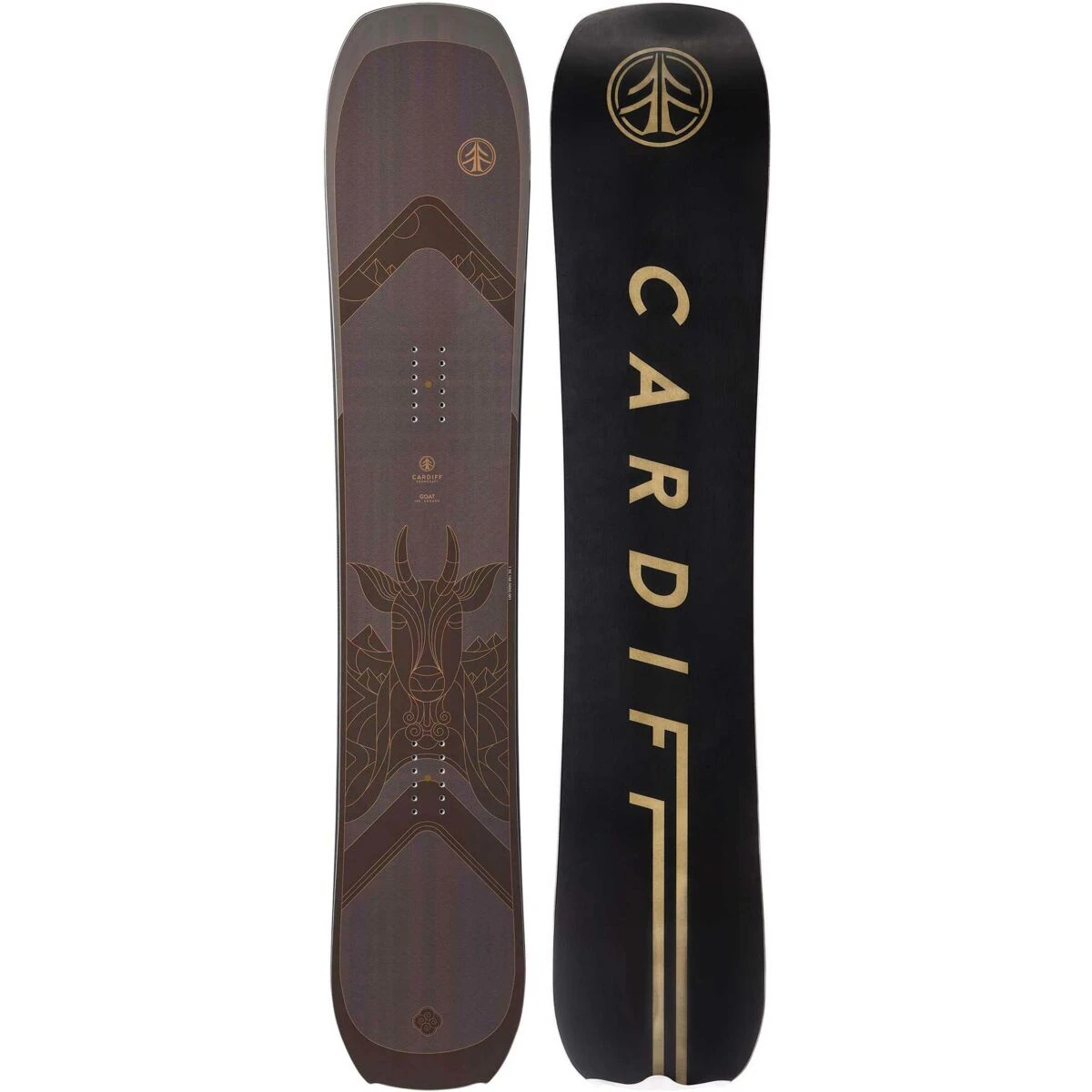 De Cardiff Goat voelt zich net als zijn onverschrokken naamgenoot, het beste thuis in het steilste en meest ruige terrein dat er bestaat. Deze charger geeft een hoop respons waarmee je snelle surfy bochten draait en ijzige traverses geen probleem zijn. De Enduro-constructie is een perfecte balans tussen prestaties, duurzaamheid, gewicht en demping. Verticaal gelamineerd carbon voor behoud van het camberprofiel. De solids zijn afgewerkt met een 7-laags lak op waterbasis voor prachtige graphics. Dit board brengt je waar geen ander board durft te gaan. Een Big-mountain board met freestyle roots, ontworpen om het meest ruige terrein te doorkruisen.