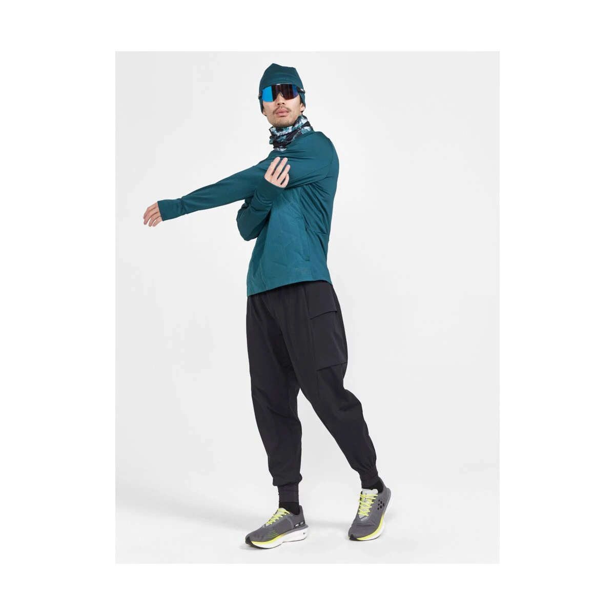 - Geborsteld gerecycled polyester en elastaan jersey aan de mouwen en achterkant voor warmte en comfort