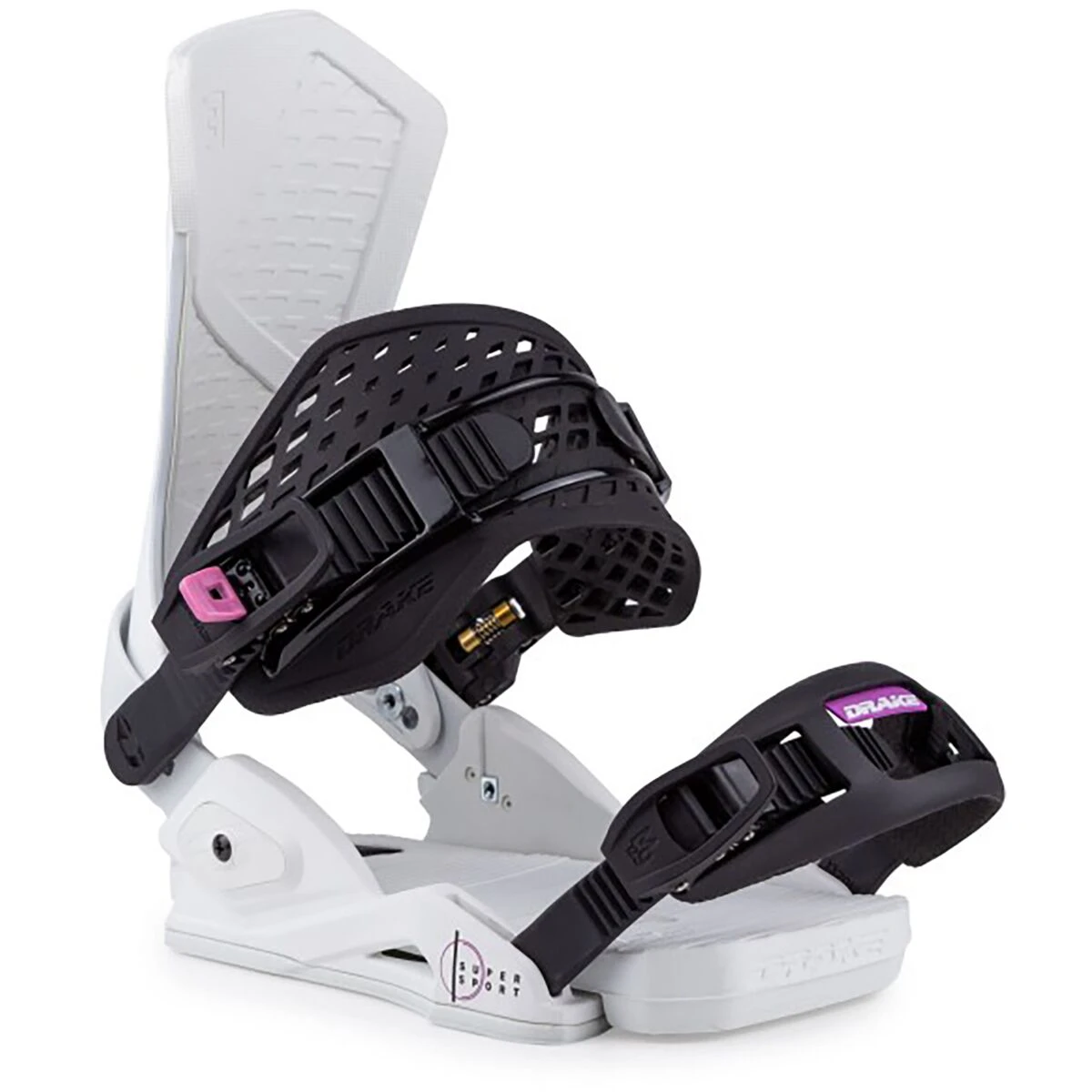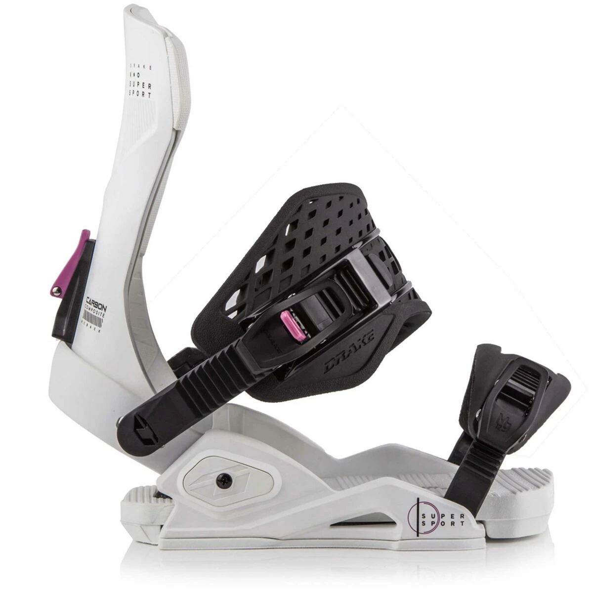 De Drake SuperSport is hun allround all-mountain binding. Met het Light Sabre-baseplate systeem kun je de base aan de hielcup kunt bevestigen en vastzetten door middel van drie ankerpunten. Hierdoor blijft de hielcup stevig en stabiel. Het Eazy Entry systeem zorgt ervoor dat je snel kan instappen. Niet voor niets is dit een teamfavoriet. Een medium stijve binding met een vleugje freestyle, geschikt voor iedere rijder.