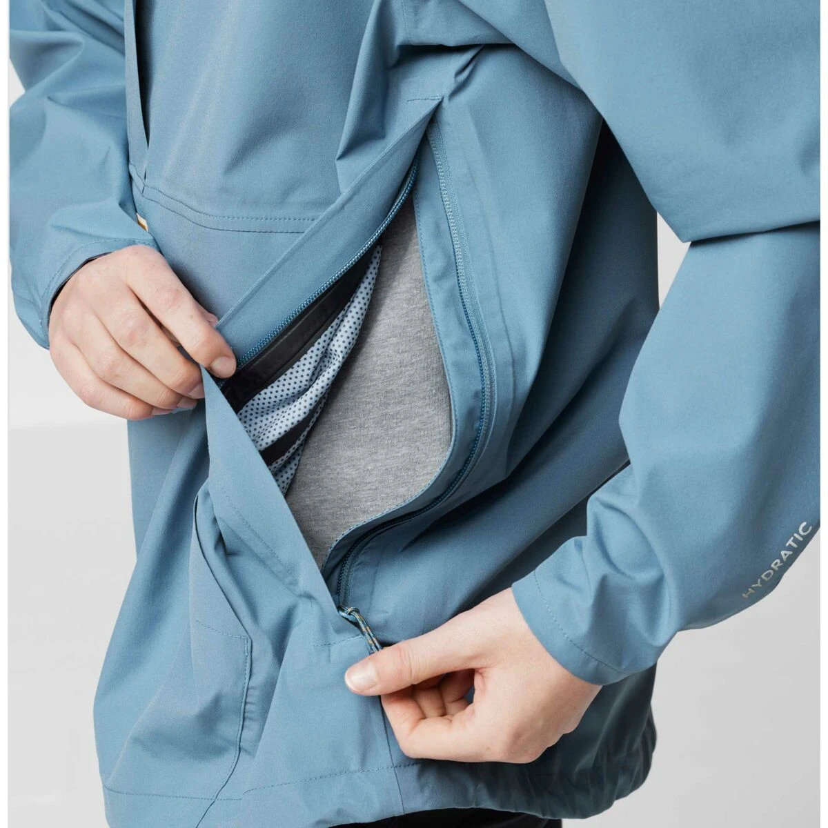 Fjallraven Vardag Hydratic Anorak voor dames is een waterdichte, ademende 2,5-laags Hydratic anorak met mechanische stretch. Vardag Hydratic Anorak W is een jas die het hele jaar door geschikt is voor wandelen, reizen en woon-werkverkeer. Gemaakt van gerecycled polyester met een PU-membraan en PFC-vrije impregnatie. Comfortabele pasvorm voor gemakkelijk layeren en zijritsen voor gemakkelijk aan- en uittrekken. De zijritsen werken ook als ventilatie en hebben een knoop in de zoom die het voor- en achterpand bij elkaar houdt. De Vardag Hydratic Anorak kan worden opgeborgen in zijn eigen mesh-zak met rits, heeft handzakken met rits, een verstelbare capuchon en half-elastische manchetten voor een low-profile, comfortabele pasvorm.