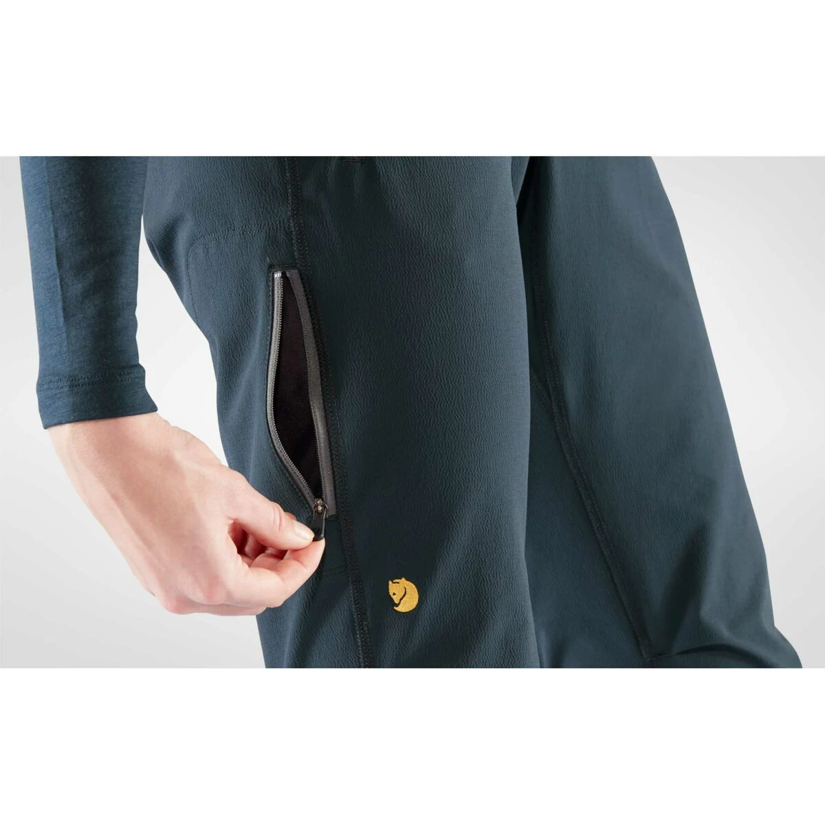 De Fjallraven Bergtagen Stretch Trousers voor dames is een stretch broek die de perfecte combinatie van bewegingsvrijheid, duurzaamheid en bescherming tijdens alpine avonturen biedt in de lente en zomer. De robuuste dubbelgeweven stretchstof voert vocht af als je je in het zweet werkt en geeft je de vrijheid die je nodig hebt voor je meest gedurfde bewegingen. De broek is water- en windresistant, snel droog en ademend, perfect als robuust kledingstuk op veeleisende tochten.