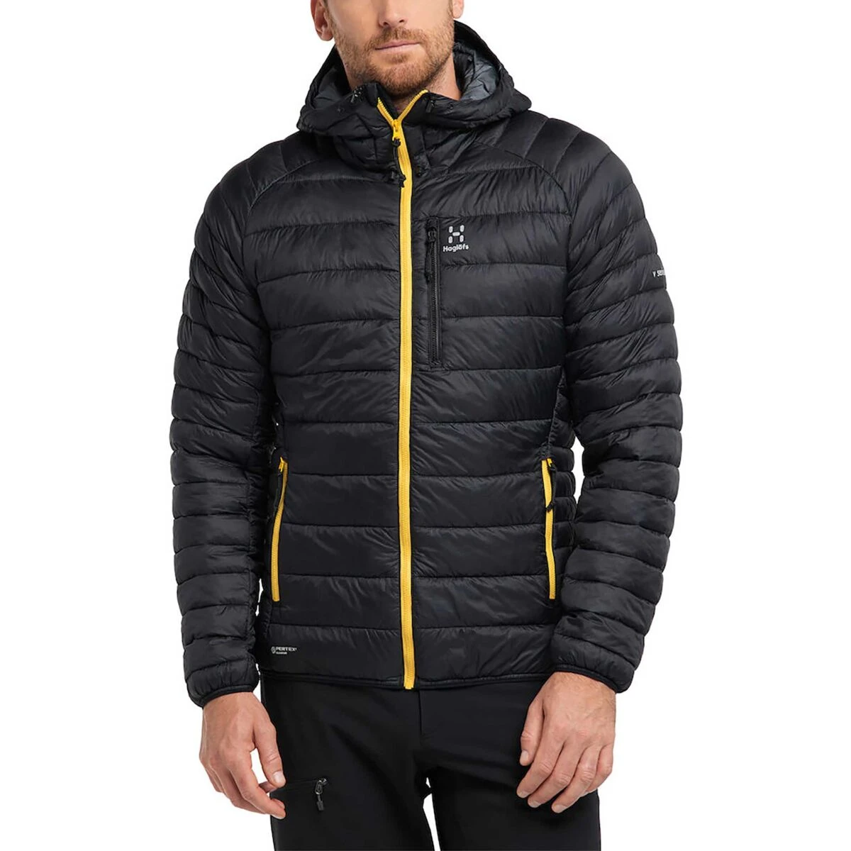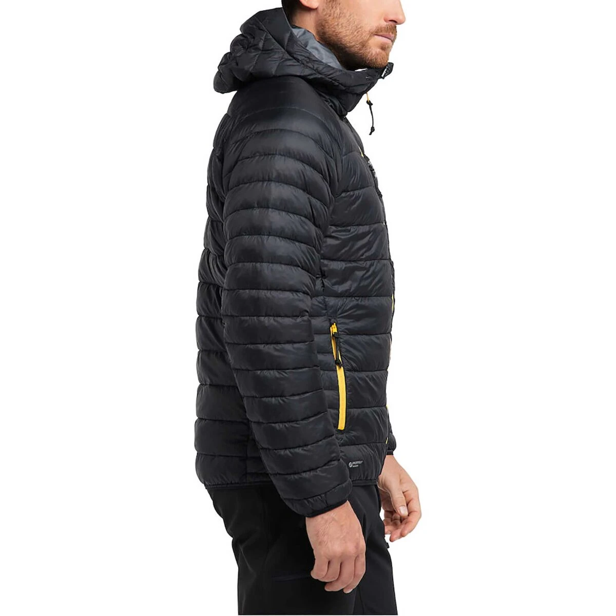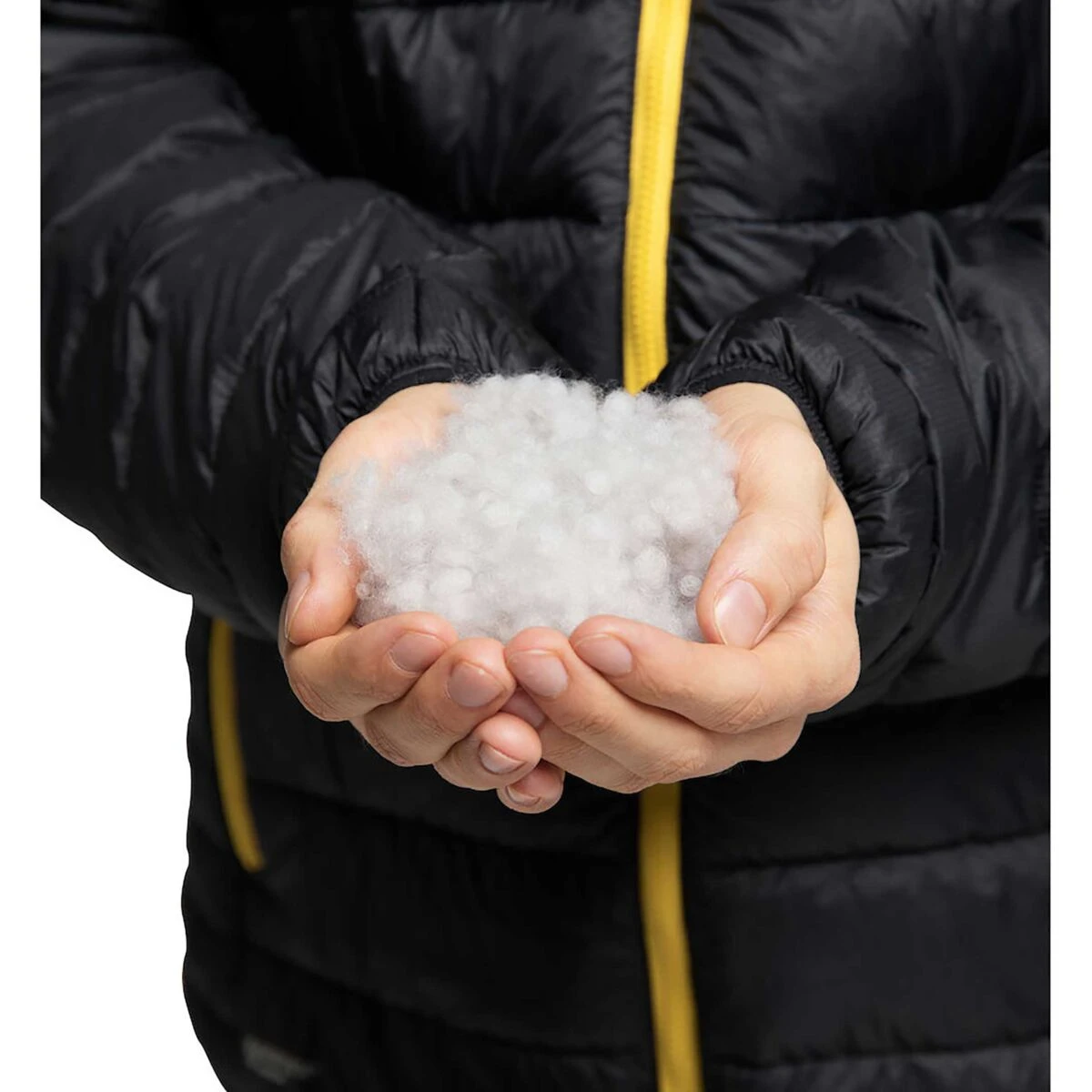 Haglöfs Mimic Hood uit de V-serie is gevuld met Mimic Platinum, een hoogwaardige synthetische isolatie. Het is gevoerd met een ademende stof met uitstekende vochtregulerende eigenschappen. Het oppervlak is wind- en waterafstotend en behandeld met een fluorkoolstofvrije DWR om water en vuil te weren. Deze combinatie verhoogt het draagcomfort en geeft de beste warmte aan het gewicht – waardoor deze jas ideaal is voor koude bergactiviteiten.