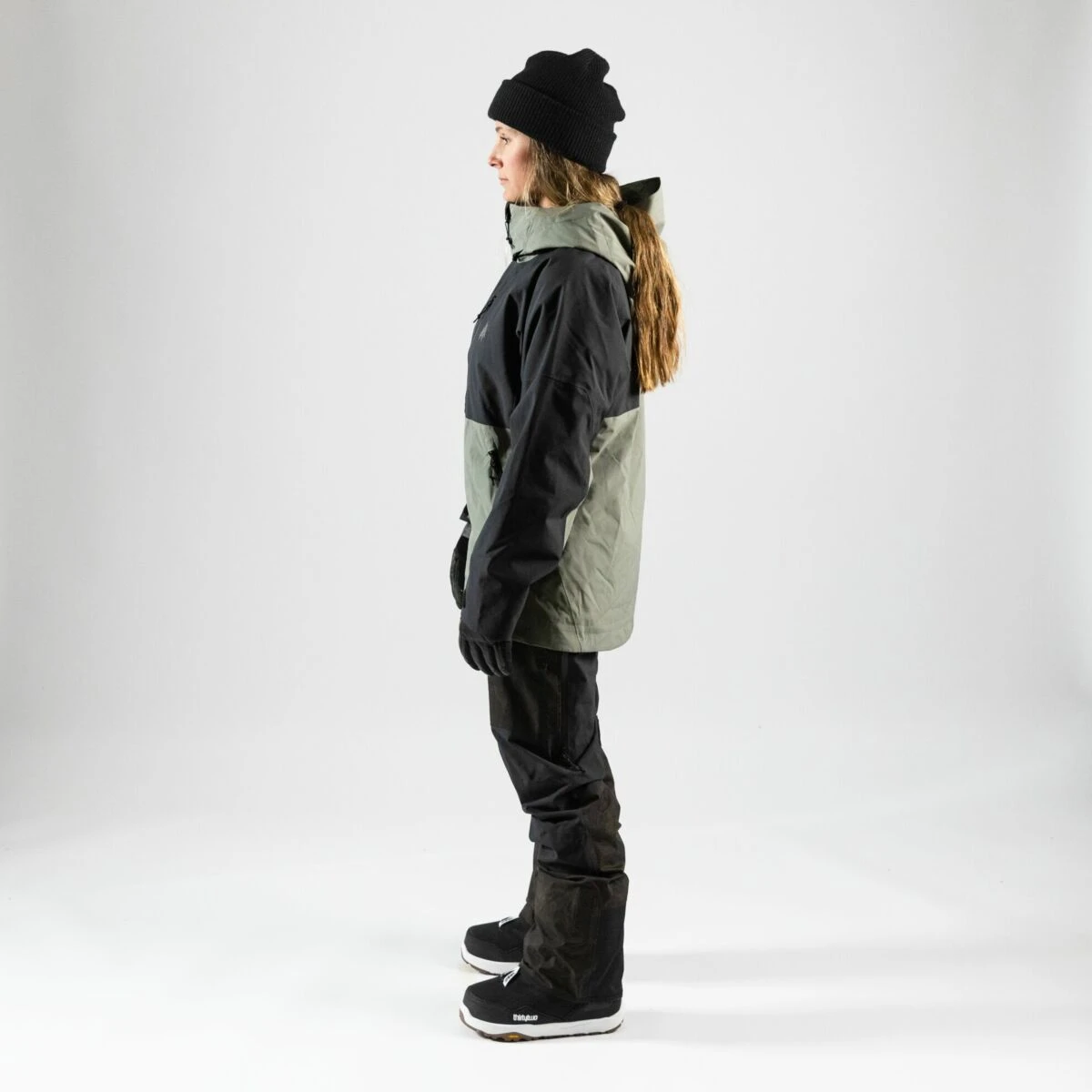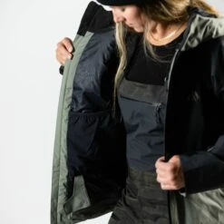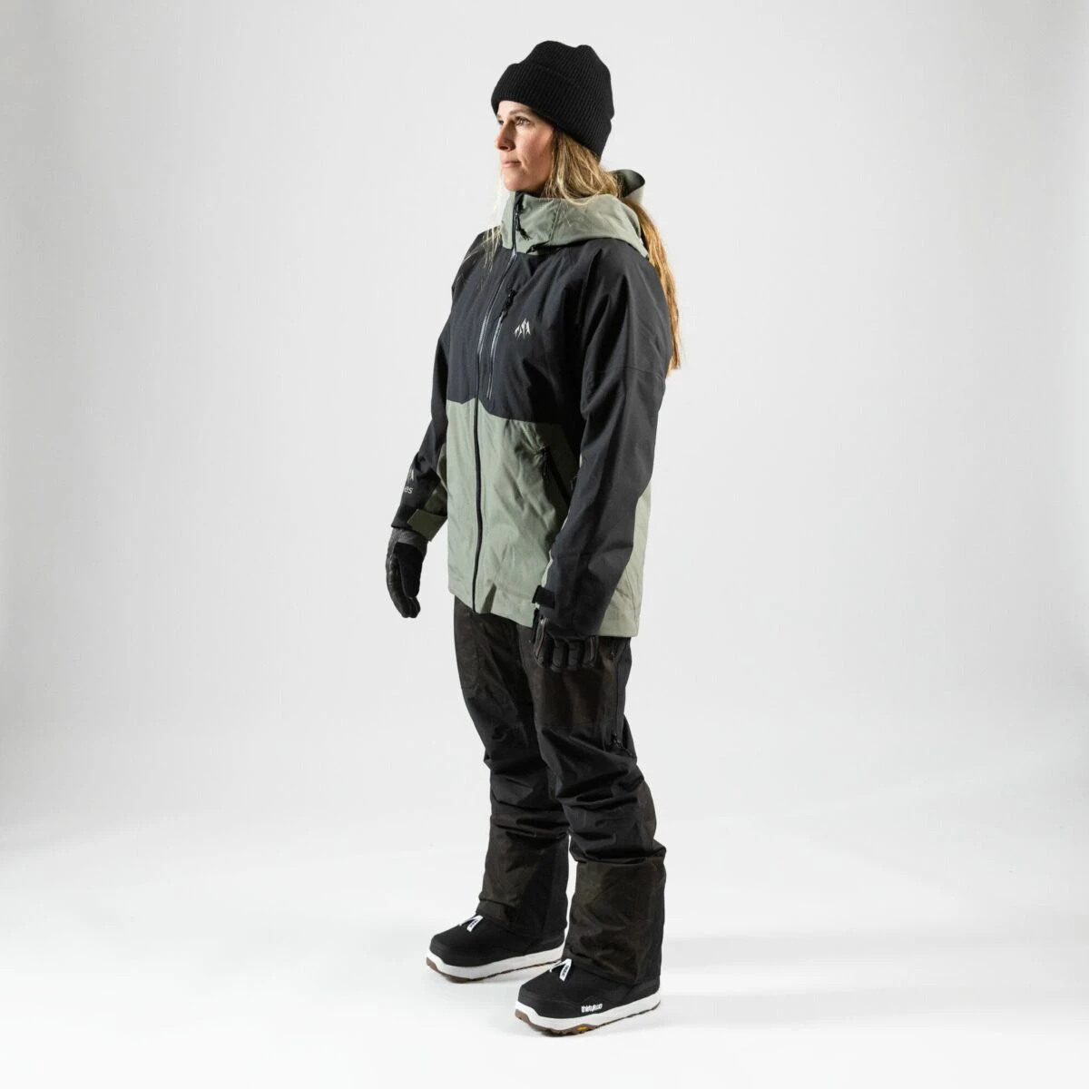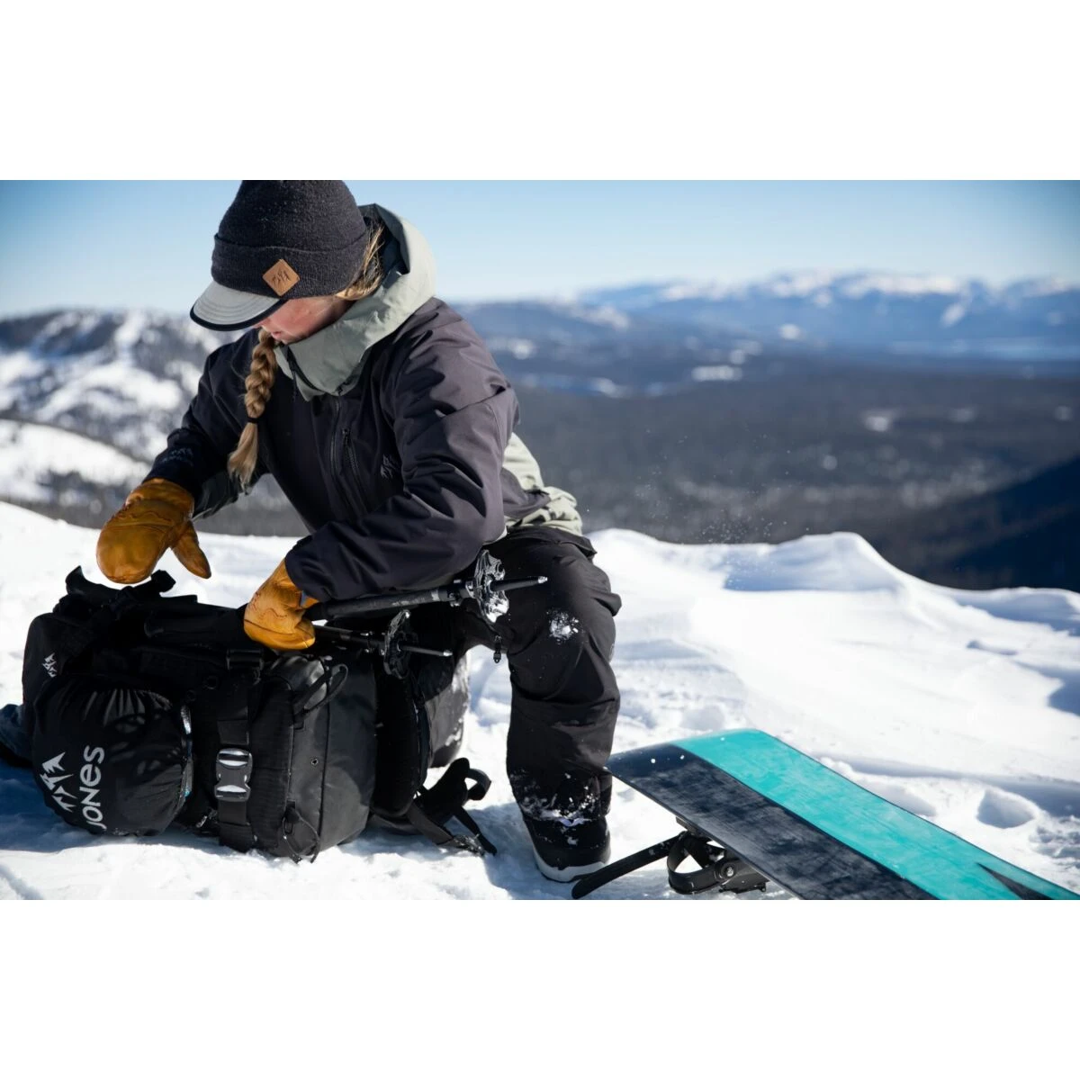 De Jones Mountain Surf Parka heeft een relaxte pasvorm en een high performance, body mapped stof lay-out die gebruik maakt van twee gedeeltelijk gerecyclede polyester stoffen. De capuchon en armen, waar je het vaakst nat wordt, zijn gemaakt van robuuste, slijtvaste tweelaagse 20K waterdichte / 20K ademende ripstop stof, en de torso, waar temperatuurregulatie cruciaal is, is gemaakt van tweelaags 20K waterdichte / 20K ademende stof die in vier richtingen rekbaar is. Beide stoffen zijn afgewerkt met een PFC-vrije DWR-behandeling voor extra bescherming tegen stormen. De jas is ook licht geïsoleerd met Primaloft Bio en gevoerd met 100% gerecycled stretch polyester voor die kille ochtenden wachtend op de eerste lift of bij het verlaten van de trailhead voor zonsopgang. Van ijskoude stormdagen tot warme zonnige dagen, het MTN Surf Parka biedt de warmte en het ademend vermogen om elke dag van het seizoen hard te rijden en droog te blijven.