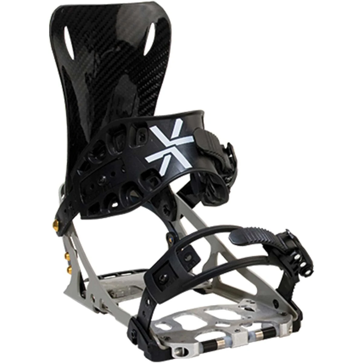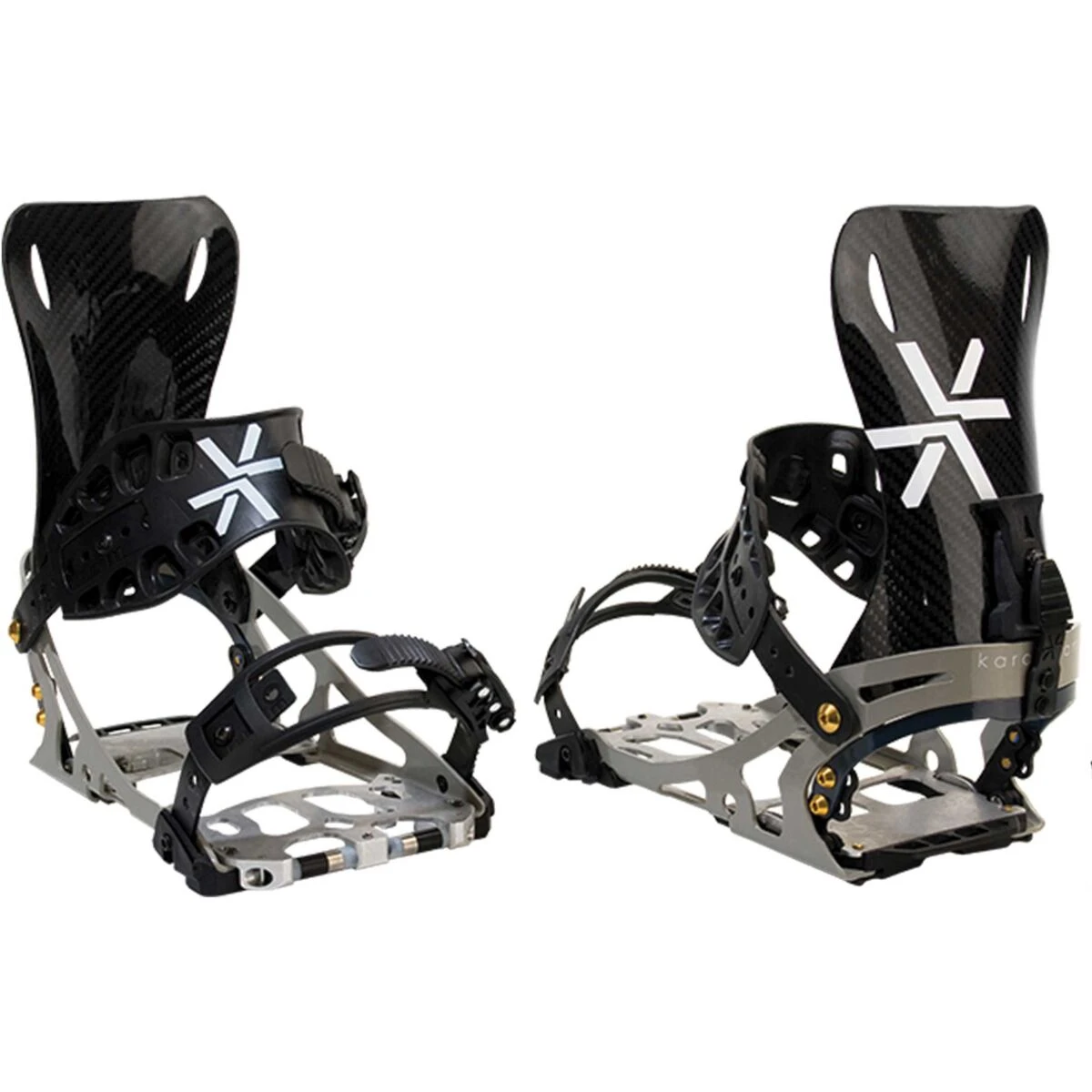 De Karakoram ‘Alpines’ zijn allemaal uitgerust met de speciale X-baseplate. Deze baseplate loopt in tegenstelling tot de Connect baseplate op de contactpunten verder door. Dit resulteert in een extreem directe overbrenging en maximale controle. De binding heeft een asymmetrische heelcup. De buitenkant is hoger voor een betere krachtoverbrenging en grip tijdens het touren. De lage binnenkant geeft meer ruimte voor beweging en een ‘surfy’ feel. De baseplate is gemaakt uit een combinatie van High Strength Alloy Aluminium en Roestvrij Staal. Alle Karakarom bindingen hebben tegenwoordig een Open Chassis, dit houdt in dat al het functieloze materiaal is weg gefreesd. Dit bespaart niet alleen gewicht, maar zorgt ook voor een meer natuurlijke flex onder de binding. De Carbon Highback is handgemaakt en bestaat 100% uit carbon. De highback is hierdoor lichter en sterker dan de kunststof variant. Uitgerust met Aluminium Hardware en holle pins, omdat iedere gram tijdens touren telt.