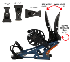 De Karakoram interface werkt door middel van de karaktaristieke hendel bij de heelcup waarmee de binding kan worden losgemaakt uit de interface. De Flex-lock zorgt ervoor dat je tijdens het touren op steile helling genoeg kantengrip houdt en niet wegglijdt op die momenten die ertoe doen. De Dual Ride-Stride Forward Lean Adjuster op de highback is zo gemaakt dat je deze eenvoudig 90° en 180° kan draaien. Hierdoor krijg je een Forward Lean van -8° tijdens het touren en de mogelijkheid van 0° tot 22° tijdens het boarden. Alle Karakoram bindingen komen bij Snowcountry inclusief de Prime Connect 2.0 Interface. Deze binding uit de ‘Alpine’ serie komt met een Dual-Speed Riser en Heel Lock.