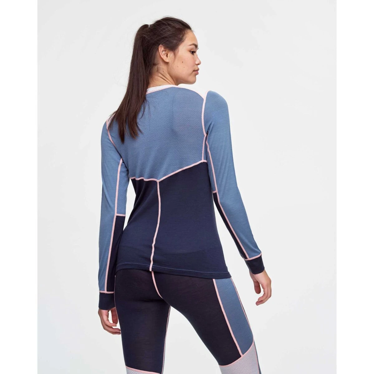 De Kari Traa Lam Longsleeve is een superzachte, supergladde, superademende, 100% ethisch gewonnen Merino wol dames baselayer top met een vrouwelijke pro-sport look. Ergonomische lijnen flatteren en samen met de in vier richtingen rekbare stof, geeft het je een slanke, nauwsluitende pasvorm. Het is van nature geurbestendig en strategische mesh ventilatie voorkomt oververhitting. Flatlocknaden en superfijne wol geven je next-to-skin comfort. Zeker een must have voor elk seizoen.