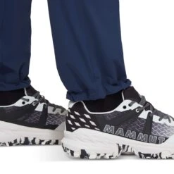 De Mammut Aenergy Light softshell broek is in de zomer ideaal voor alpinisme, klimmen of voor wandelingen in de bergen tijdens seizoensovergangen. Hij is gemaakt van een bijzonder licht en toch zeer slijtvast dubbelweefsel. De waterafstotende behandeling is PFC-vrij. De broek is ademend, sneldrogend en de elastische eigenschappen zorgen voor bewegingsvrijheid. De tailleband is elastisch en het trekkoord zorgt voor een perfecte pasvorm. De voor een klimgordel geschikte zakken hebben ritsen zodat er niets verloren gaat. Met een trekkoord kun je de beenzomen ideaal verstellen voor een meer gestroomlijnde pasvorm, zodat je een beter zicht hebt op de plaats van je voeten tijdens het bergbeklimmen.