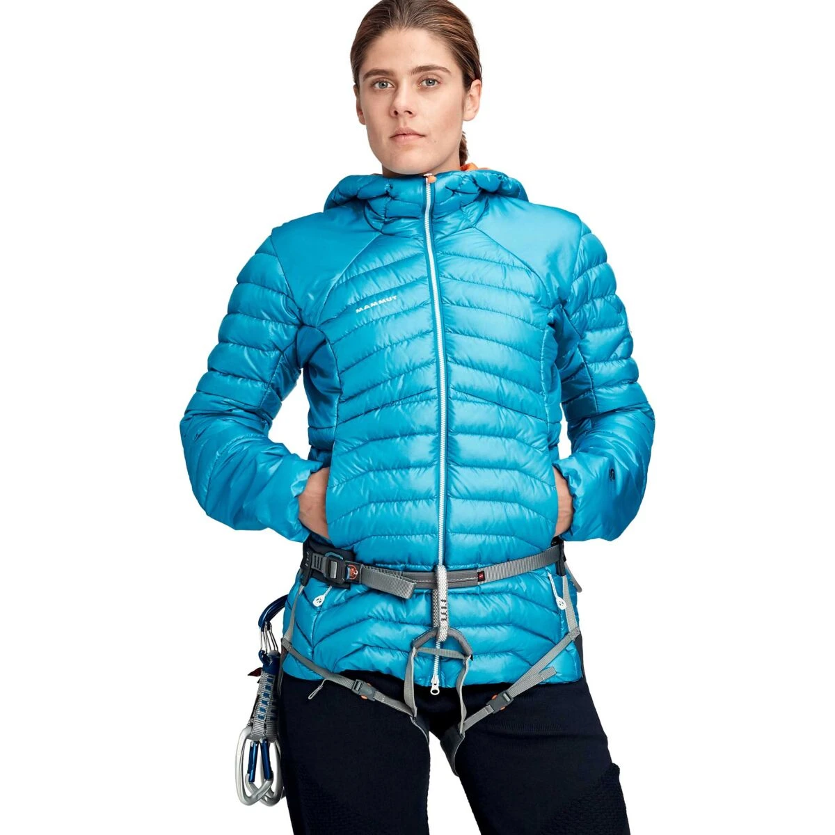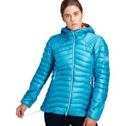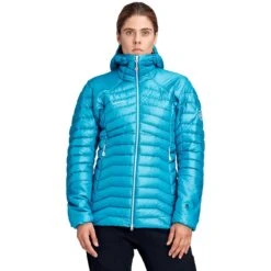 Mammut Eigerjoch Advanced IN Hooded Jacket Dames. Een warme, lichtgewicht geïsoleerde jas, geschikt als midden- en buitenlaag. De hybride constructie van dons en PrimaLoft® Gold Active zorgt voor een optimale vochtafvoer. Het Eigerjoch-jack is bestand tegen contact met rotsen en het dragen van een rugzak. Zonder compromissen. Een donsjack met een uitstekende warmte en gewichtsverhouding.