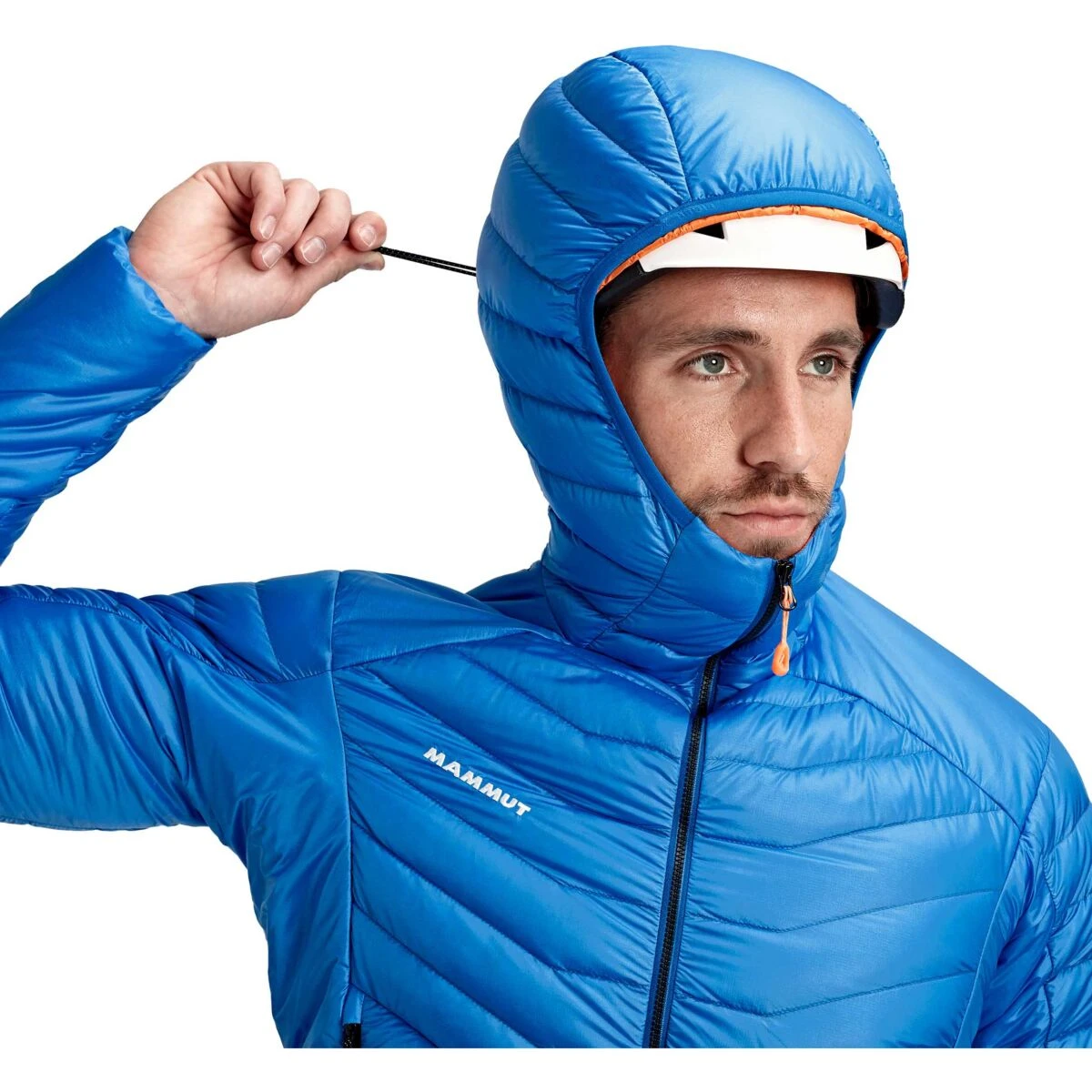 Mammut Eigerjoch Advanced IN Hooded Jacket Men. Een warme, lichtgewicht geĂ¯soleerde jas, geschikt als midden- en buitenlaag. De hybride constructie van dons en PrimaLoft® Gold Active zorgt voor een optimale vochtafvoer. Het Eigerjoch-jack is bestand tegen contact met rotsen en het dragen van een rugzak. Zonder compromissen. Een donsjack met een uitstekende warmte en gewichtsverhouding.