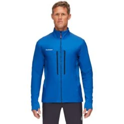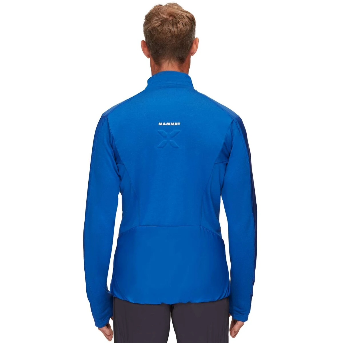 De Mammut Eigerjoch Insulated Hybrid Jacket Men uit de Mammut Eiger Extreme-collectie is een hoogwaardig geïsoleerd jack. Elastische fleecepanelen bieden verbeterde bewegingsvrijheid en ademend vermogen voor backcountry skitochten en bergbeklimmen. Het wolgehalte heeft een natuurlijke geurremmende werking. Het ongevoerde Polartec® Alpha® Direct isolatie materiaal houdt warmte vast zonder overmatige warmte ontwikkeling, waardoor het ideaal is voor intensieve activiteiten. De voorzakken zijn gemakkelijk toegankelijk, zelfs met een klimgordel en rugzak. Je kan de jas opbergen in zijn eigen linker zak.