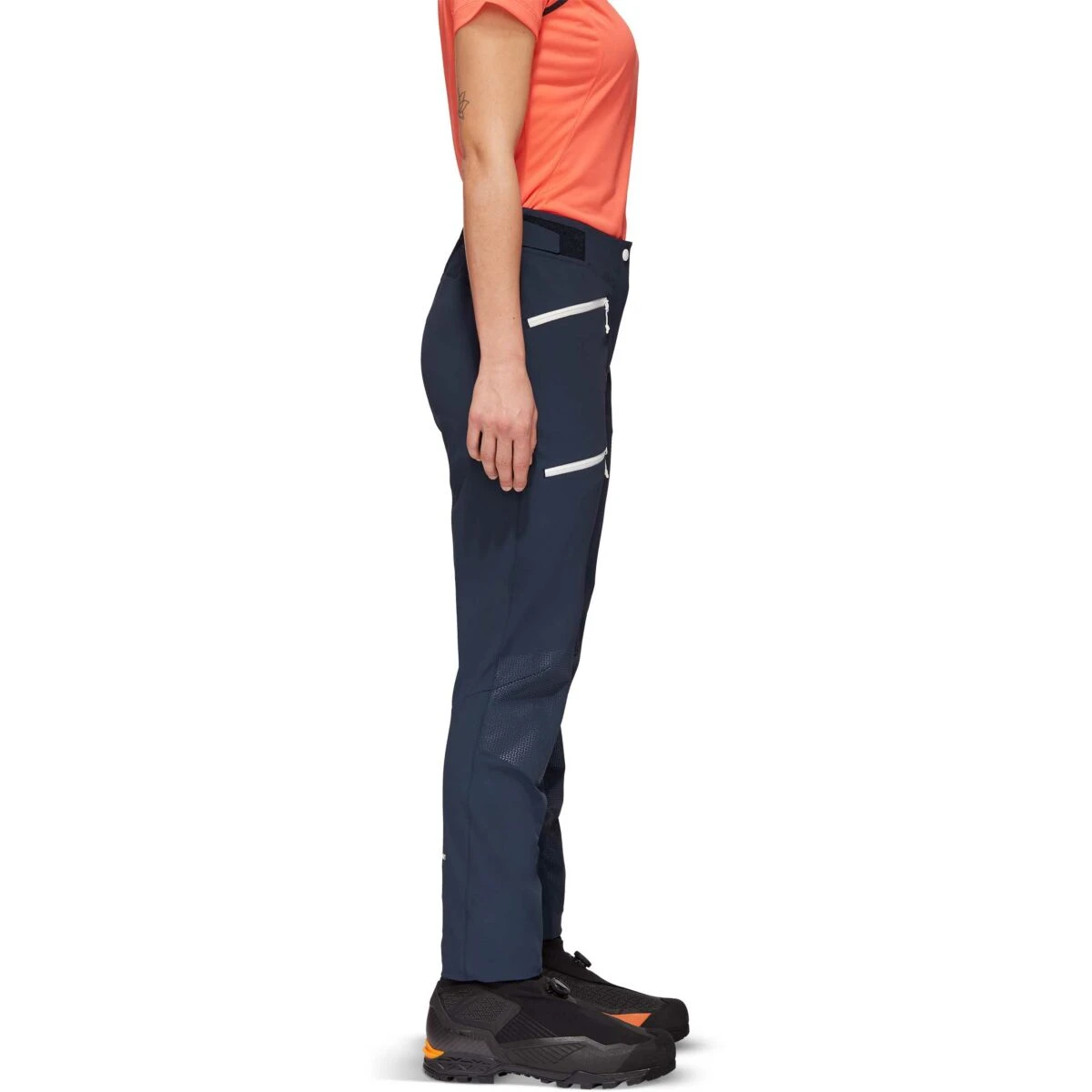 De Mammut Eisfeld Light Softshell Pants Women is ontwikkeld voor sportief bergbeklimmen en zijn gemaakt van een extreem slijtvaste dubbele stof softshell en versterkt op bijzonder slijtage gevoelige plaatsen. Het zeer elastische materiaal biedt volledige bewegingsvrijheid. De slanke snit van de broek en de smalle pijpen met een asymmetrische zoom zorgen voor een precieze pasvorm en minder slijtage.