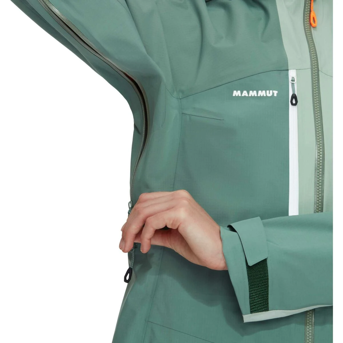 De Mammut Taiss Hardshell Jacket is een jas voor het hele jaar door. Dit lichtgewicht multitalent is niet alleen water- en winddicht, maar ook sterk en extreem ademend. De jas scoort even hoog op prestaties als op comfort, en de ruime zakken en verstelbare capuchon met versterkte bovenkant passen perfect bij een klimgordel en helm. De goede pasvorm en het elastische materiaal geven je veel bewegingsvrijheid, terwijl de ventilatie onder de armen je fris houdt.