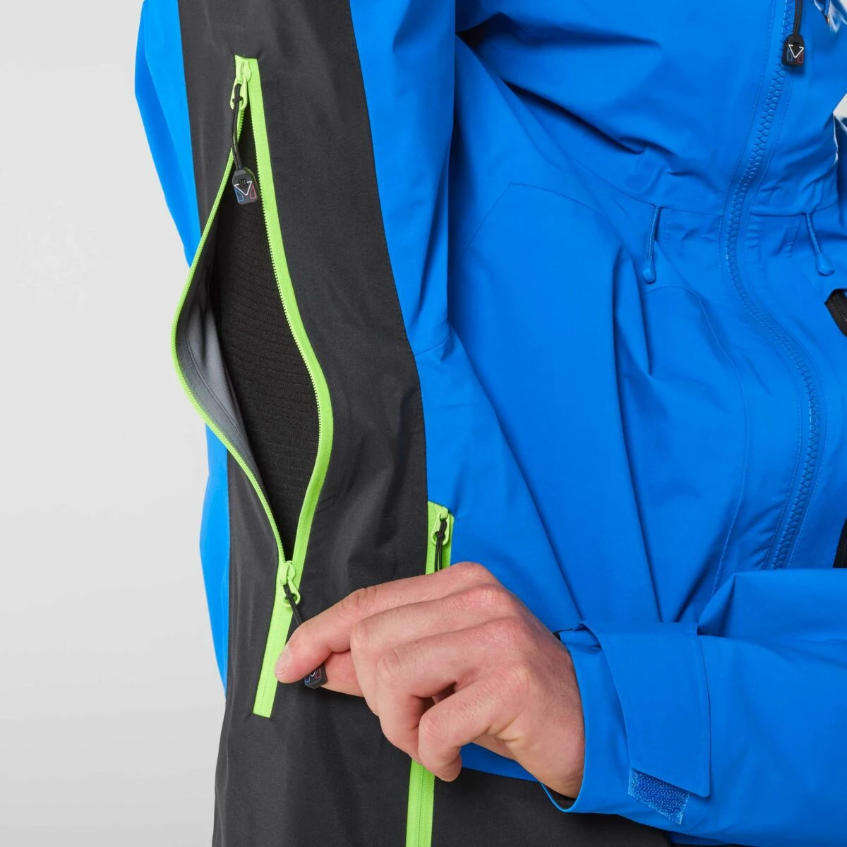 De Millet Trilogy Edge Gore-Tex Jacket Men, ga de hoogte in zonder angst voor de elementen met dit zeer technische, waterdichte en windbestendige bergsportjack, dat ook geschikt is voor skitochten met zijn langere snit en afneembare sneeuwvanger. De combinatie van 3L dubbele Gore-tex® Pro-stoffen maakt hem extreem licht en meer ademend dan de meeste jassen, maar zorgt er tegelijkertijd voor dat hij ongelooflijk slijtvast is, een echte aanwinst voor wie zijn uitrusting hard nodig heeft. Het beweegt met je mee dankzij de ergonomische constructie en de capuchon die zich perfect aanpast aan je helm en in enkele ogenblikken kan worden aangepast. Deze jas houdt je hoe dan ook comfortabel droog.