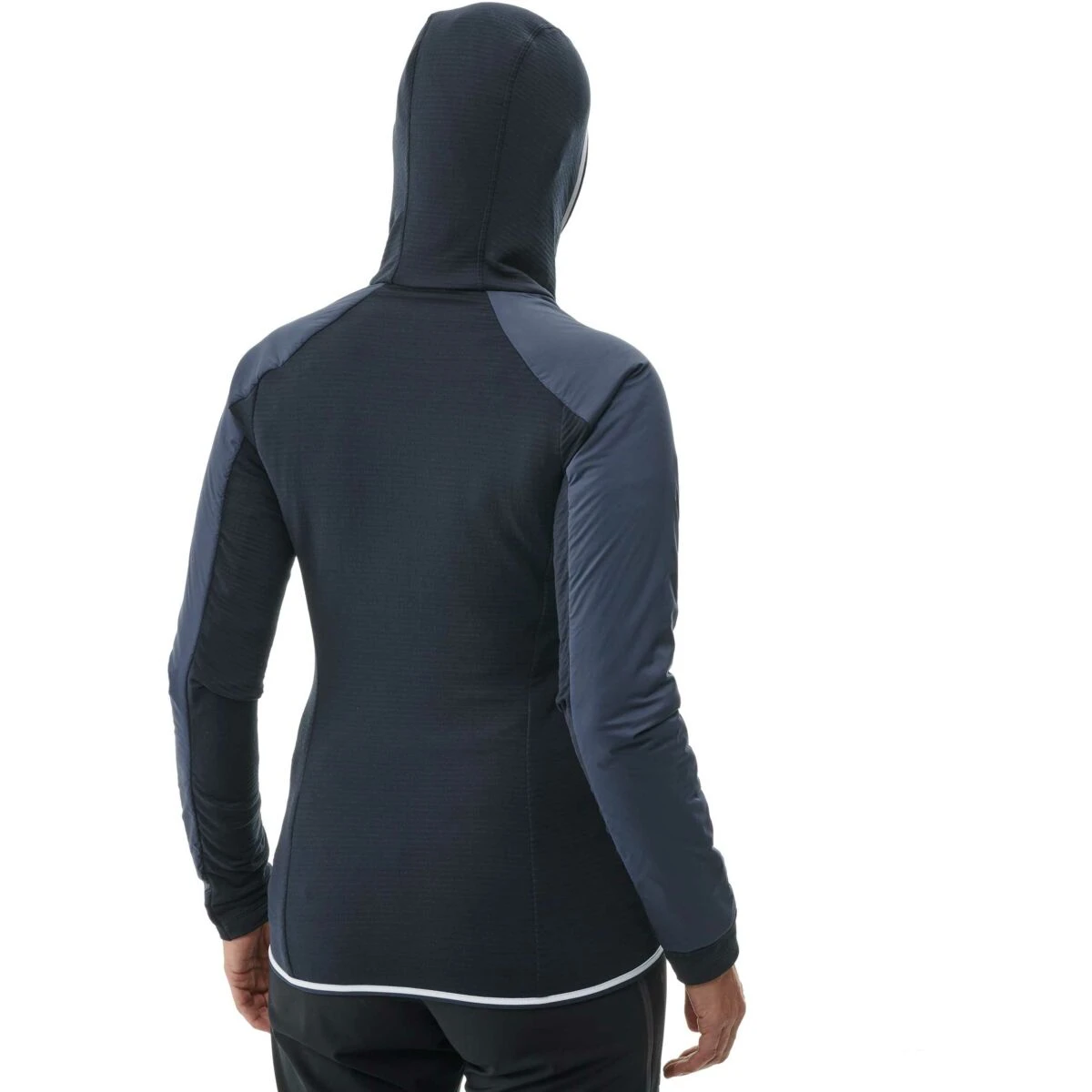 De Trilogy Hybrid Alpha Hood Women is een zeer trendy hybride jas. Het combineert verschillende materialen op een manier die de voordelen van elk maximaliseert. De alpine pasvorm en stretchstof zorgen voor vrije beweging en de zijpanelen van wolfleece verbeteren de vochtoverdracht en het comfort. De voorkant, achterkant en buitenkant van de mouwen zijn geïsoleerd met 40 gram Polartec alpha, een ademende isolatie die je warm houdt als het er op aan komt, door de warmteoverdracht aan te passen aan je lichaamstemperatuur.