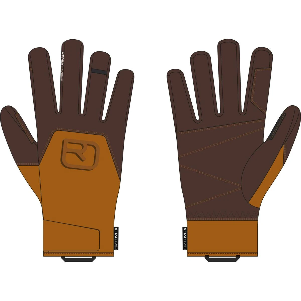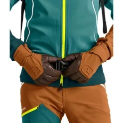 Met de Ortovox Alpine Pro Glove ligt elke top, hoe hoog ook, binnen handbereik, want de wind- en waterdichte handschoen voor tourskiërs is zo robuust, slijtvast en functioneel dat je krachtig grip hebt op ijs, sneeuw en rotsen. Een Sympatex®-membraan houdt de handen absoluut droog van de vingertoppen tot de verstelbare manchet, terwijl het ook punten scoort voor een aangenaam ademend vermogen. Een extra portie warmte wordt geleverd door een vulling van gerecyclede wol op de backhand. Die houdt de vingers netjes warm zonder de handschoenen te veel op te blazen of het tastgevoel te belemmeren. Verstevigingen op de wijsvinger en de duim voorkomen schuren door touw, steen of pikkel. Van binnenuit zit zachte merinowol en garandeert dankzij de natuurlijke eigenschappen een aangename temperatuur, ook als het in het hooggebergte onaangenaam koud wordt. De perfecte metgezel voor alle ski- en bergtochten, die op geen enkele paklijst mag ontbreken.