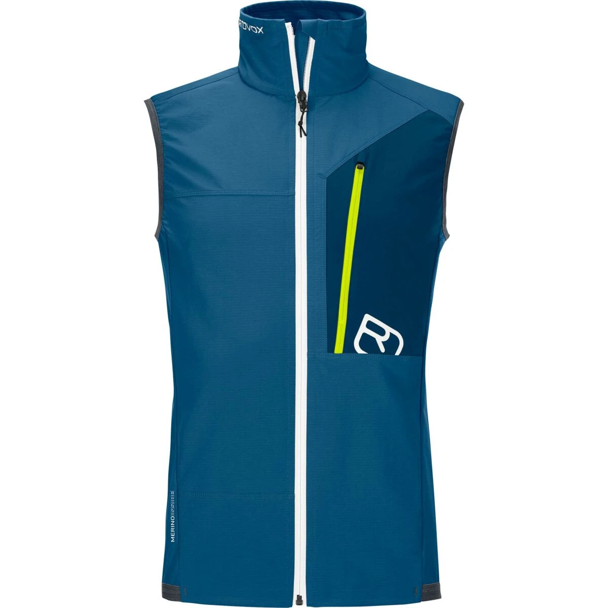 Het lichtgewicht Ortovox Berrino Vest voor heren is een functionele allrounder voor dagenlang skitour plezier wanneer minder meer is. Tasmaanse merinowol zorgt met zijn geribbelde binnenstructuur voor uitstekende isolatie en voelt aangenaam aan op de huid. Aan de buitenkant biedt het lichtgewicht softshell-vest slijtvastheid en bescherming tegen weer en wind. Het elastische twee-weg stretchmateriaal past zich aan elke beweging aan. Hoogwaardige details zoals elastische manchetten, een gelijmde naad en een tweelaagse kraag geven het lichtgewicht softshell vest een strakke, pure look.