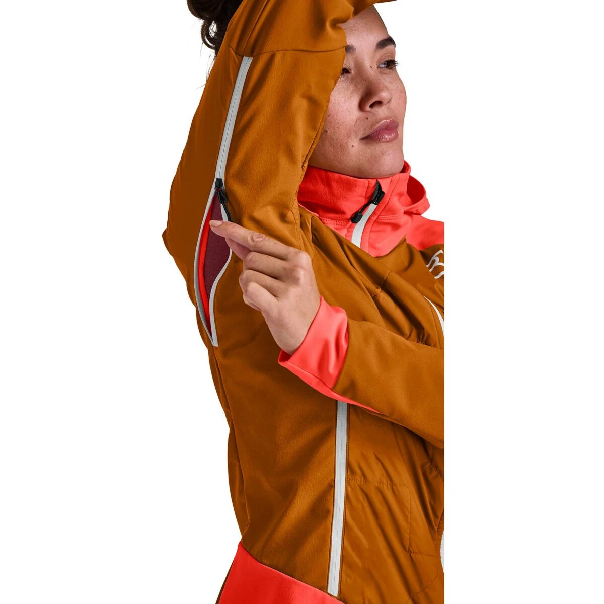 De Ortovox Swisswool Col Becchei Hybrid Jacket voor dames biedt optimale bescherming en maximale bewegingsvrijheid tijdens veeleisende skitocht beklimmingen in de bijtende kou.