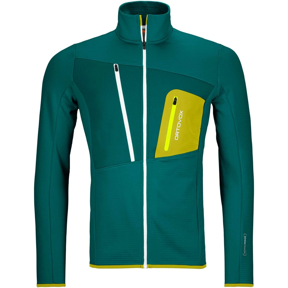 De Fleece Grid collectie is een de ideale metgezel in de bergen, dankzij de binnenste luchtkanalen ademend en warm. Een Fleece Light inzetstuk op de borst en een dubbellaagse borstzak zorgen voor extra bescherming tegen de wind.Tijdens intensieve beweging is de samenstelling van het materiaal uitstekend rekbaar en biedt ventilatie dankzij de interne kanaalstructuur. De temperatuur regulerende eigenschappen worden ondersteund door fijne merino wol aan de binnenkant, tasmaanse wol reguleert het vocht- en temperatuurniveau is sneldrogend en heeft geur neutraliserende eigenschappen.
