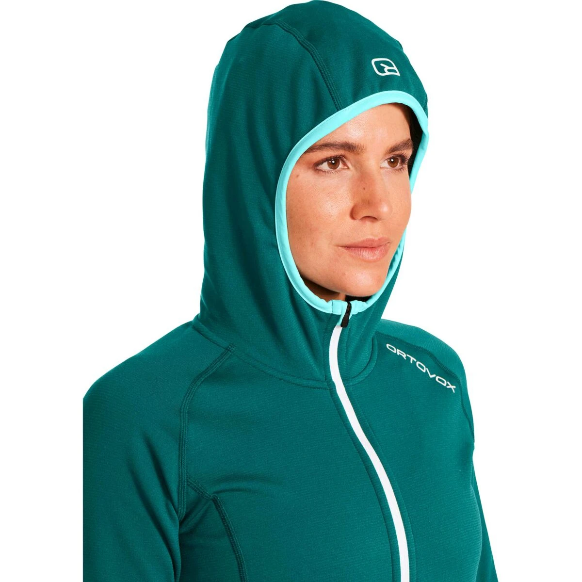 Technische kenmerken zoals rugzak-compatibele voorzakken, gelijmde naden van de zakken en duimlussen, maken onze fleece lichte hoody zonder franje voor dames een ideale tweede laag – voor alle seizoenen. Fijne Tasmaanse merinowol en wafelstructuur aan de binnenkant zorgen voor een goede vochtafvoer en voelen droog aan tijdens zware activiteiten. Het materiaal is bovendien extreem ademend, sneldrogend en zeer rekbaar.