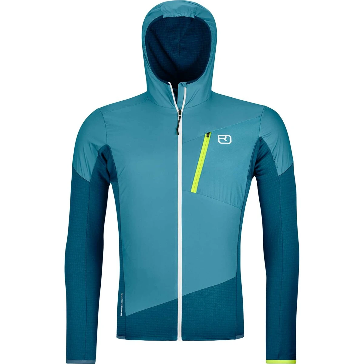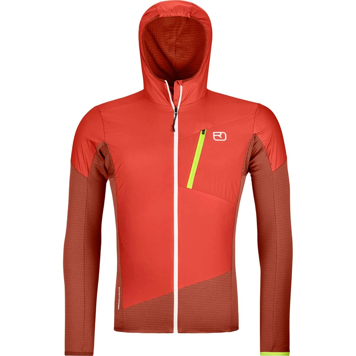 Wie tijdens zijn bergtochten in uitdagend terrein in een sportief tempo aanpakt, vindt in het Ortovox Ladiz Hybrid Jacket voor heren een trouwe metgezel, een jas zonder franje die toch zeer functioneel is. Het atletisch gesneden hybride jack combineert het beste van twee werelden. Enerzijds is het ademend, klein op te vouwen en zo licht dat je het nauwelijks voelt als je het draagt. Aan de andere kant biedt het zachte, ademende Merino Fleece Light Grid-materiaal met wafelstructuur aan de binnenkant warmte wanneer je die nodig hebt. Aan de voorkant en dus in het kerngebied van het lichaam, op de schouders en de capuchon is winddicht Tec-Stretch materiaal verwerkt, dat elke beweging optimaal volgt en tegenwind betrouwbaar tegenhoudt. Dankzij de hoge functionaliteit is het Ortovox Ladiz Hybrid Jacket voor heren veelzijdig inzetbaar op de berg en in het dal, zowel als dunne isolerende tussenlaag als als beschermende buitenlaag.