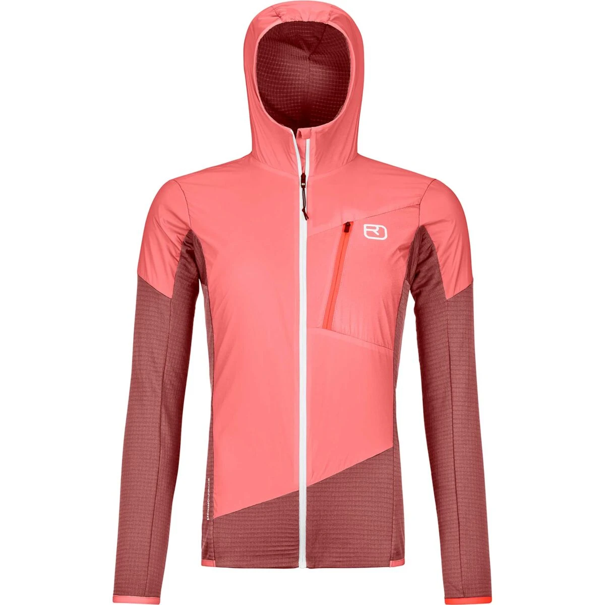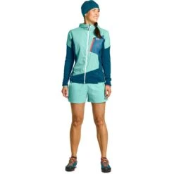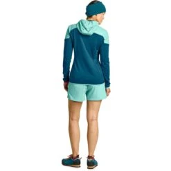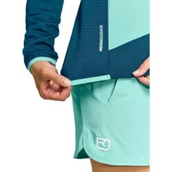 Wie tijdens zijn bergtochten in uitdagend terrein in een sportief tempo aanpakt, vindt in het Ortovox Ladiz Hybrid Jacket voor dames een trouwe metgezel, een jas zonder franje die toch zeer functioneel is. Het atletisch gesneden hybride jack combineert het beste van twee werelden. Enerzijds is het ademend, klein op te vouwen en zo licht dat je het nauwelijks voelt als je het draagt. Aan de andere kant biedt het zachte, ademende Merino Fleece Light Grid-materiaal met wafelstructuur aan de binnenkant warmte wanneer je die nodig hebt. Aan de voorkant en dus in het kerngebied van het lichaam, op de schouders en de capuchon is winddicht Tec-Stretch materiaal verwerkt, dat elke beweging optimaal volgt en tegenwind betrouwbaar tegenhoudt. Dankzij de hoge functionaliteit is het Ortovox Ladiz Hybrid Jacket voor heren veelzijdig inzetbaar op de berg en in het dal, zowel als dunne isolerende tussenlaag als als beschermende buitenlaag.