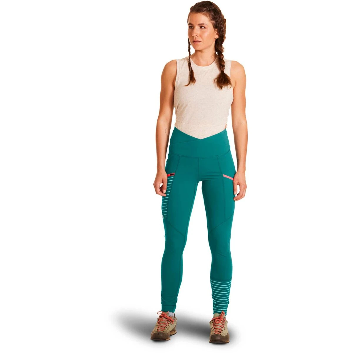 De Ortovox Mandrea Tights W is speciaal ontworpen om te klimmen. De Mandrea legging biedt onbeperkte bewegingsvrijheid voor atletische manoeuvres op rotswanden. Deze lichte klimbroek sluit perfect aan op het lichaam dankzij het elastische, ondoorzichtige hoofdmateriaal en de lichaamsgevormde snit. De taille is bijzonder hoog uitgesneden, zodat het niergebied altijd goed bedekt is, zelfs tijdens atletische bewegingen. Bijzonder comfortabel zijn de vochtregulerende Merino Mesh-inzetstukken aan de binnenkant van de tailleband. De naden en het buitenmateriaal zijn gemaakt van slijtvast polyamide om ruig terrein te trotseren, en de stof is iets dikker om je comfortabel warm te houden op kille dagen.