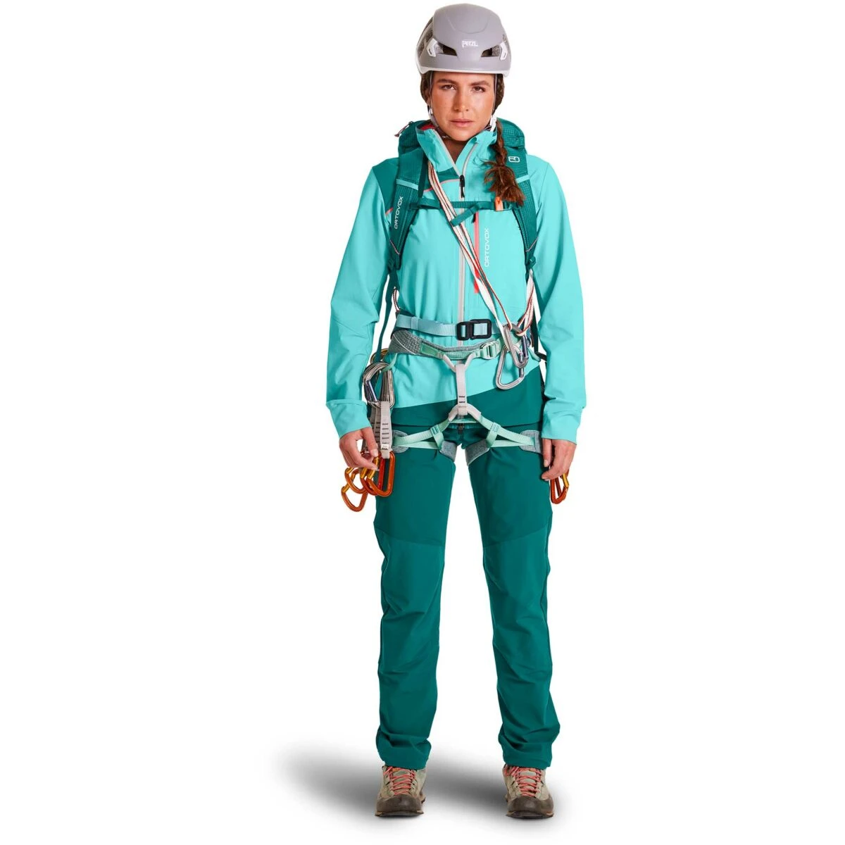 De Ortovox Pala Light Jacket voor dames is een extreem duurzaam, rekbaar, atletisch jack met capuchon voor alpine klimmen. “De massieve, bizarre torens van de Pala-groep steken uit het stenige alpenplateau. Klimmen hier in de meest zuidelijke bergketen van de Dolomieten vereist stalen zenuwen – en sterk materiaal. De Ortovox Merino Shield Tec lijn is speciaal ontworpen voor lange, alpine routes zoals deze.
