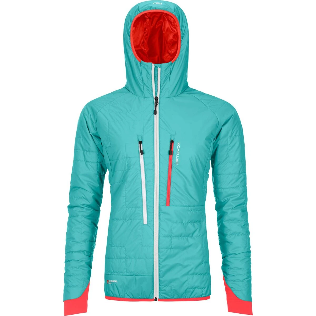 De 60 g/m2 Swisswool® voering zorgt niet alleen voor uitstekende isolatie tegen de kou, de vezels hebben ook een vochtregulerende functie, en absorberen tot 35% van hun eigen gewicht aan vocht. Dankzij de atletische snit en de elastische Merino Naturetec Light op de rug past het Ortovox Piz Boé Jacket voor dames zich aan elke beweging aan, zelfs in het meest veeleisende terrein. De nauwsluitende, elastische capuchon, aansluitende mouwen en elastische tailleband houden wind en kou op afstand, zelfs op ijskoude toppen. De ruime voorzak en borstzakje bieden extra ruimte voor essentiële zaken die je bij de hand moet houden, zelfs als je een rugzak of riem hebt.