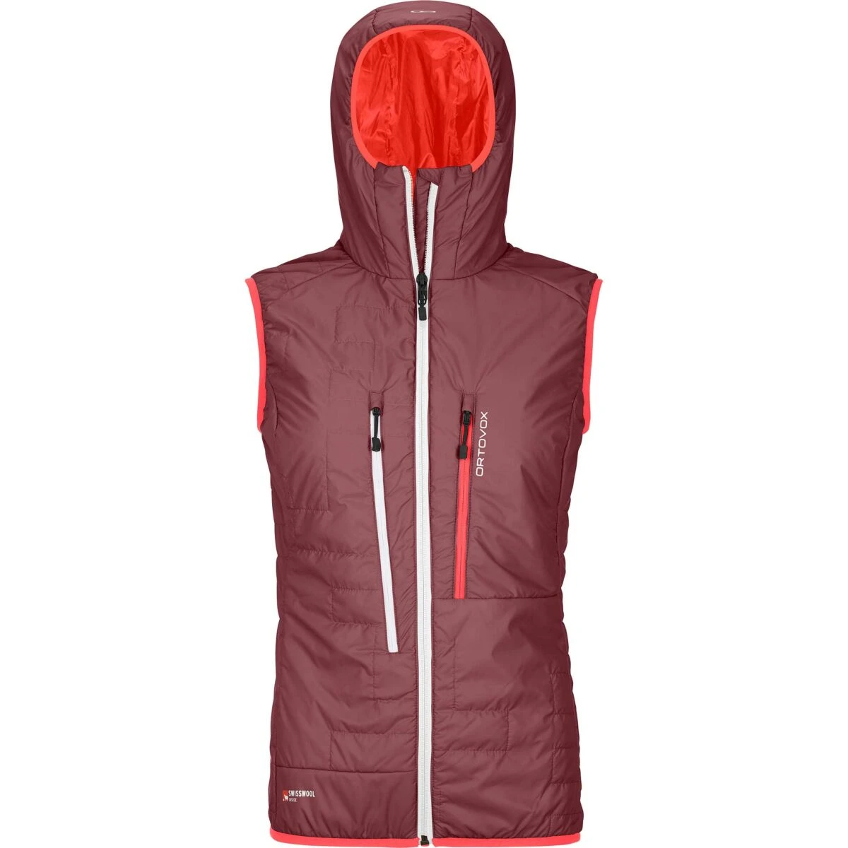 De 60 g/m2 Swisswool® voering zorgt niet alleen voor uitstekende isolatie tegen de kou, de vezels hebben ook een vochtregulerende functie, en absorberen tot 35% van hun eigen gewicht aan vocht. Dankzij de atletische snit en de elastische Merino Naturetec Light op de rug past het Ortovox Piz Boé Vest voor dames zich aan elke beweging aan, zelfs in het meest veeleisende terrein. De nauwsluitende, elastische capuchon en elastische tailleband houden wind en kou op afstand, zelfs op ijskoude toppen. De twee ruime voorzakken bieden extra ruimte voor essentiële zaken die je bij de hand moet houden, zelfs als je een rugzak of riem hebt.