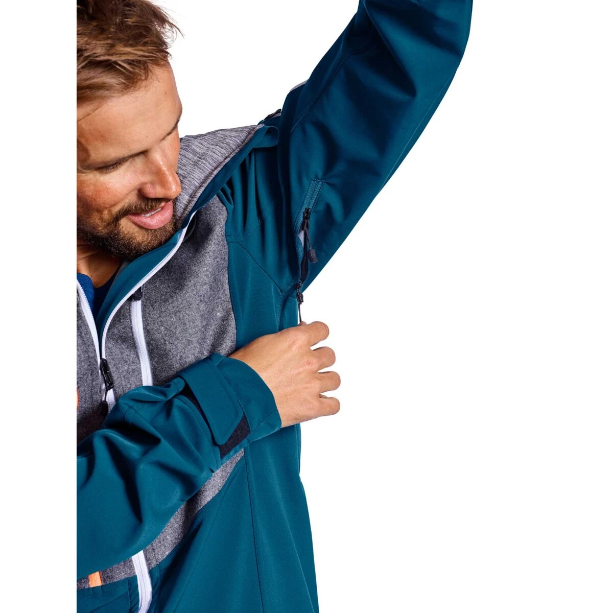 Als het koud is, sluit het membraan op de Pordoi jas zich en zodra het lichaam te heet wordt, openen de poriën om de temperatuur en de zweetproductie te regelen. De schaal van polyamide en elastaan houdt de buitenwereld … buiten. Dit ensemble van vezels zal imponeren met zijn elasticiteit en robuustheid; het houdt de wind buiten en is waterbestendig. Ortovox wol-DNA is duidelijk zichtbaar in het Loden-materiaal, dat gedeeltelijk is ingebracht en wordt bedekt met een membraan. Ortovox is wol!