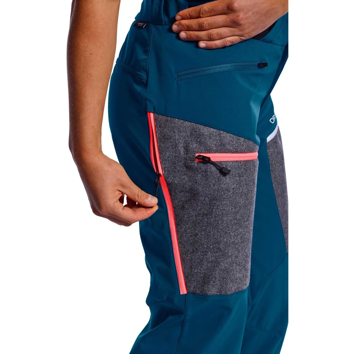 Als het koud is, sluit het membraan op de Pordoi broek zich en zodra het lichaam te heet wordt, openen de poriën om de temperatuur en de zweetproductie te regelen. De schaal van polyamide en elastaan houdt de buitenwereld … buiten. Dit ensemble van vezels zal imponeren met zijn elasticiteit en robuustheid; het houdt de wind buiten en is waterbestendig. Ortovox wol-DNA is duidelijk zichtbaar in het Loden-materiaal, dat gedeeltelijk is ingebracht en wordt bedekt met een membraan. Ortovox is wol!