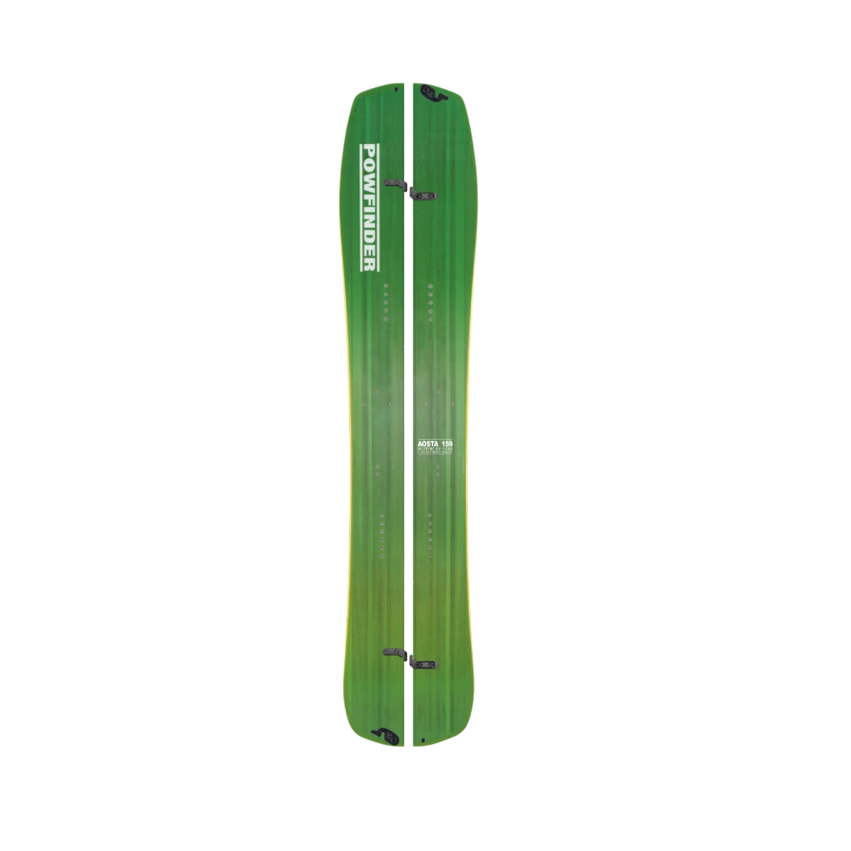 Maak kennis met de nieuwe Aosta Split van Powfinder. Een splitboard gebouwd voor maximale prestaties buiten de piste en in technisch alpine terrein. De Aosta-split is de spin-off van onze nieuwe liefdesbaby: de Aosta 159. Met een directionele freeride-vorm, een directioneel rockerprofiel en een mid-stijve flex, is de Aosta-split speels in zachte sneeuw, maar geeft vertrouwen op steile, harde sneeuw of je nu omhoog of omlaag gaat. De taps toelopende vorm laat de staart in de poeder zakken voor een betere float. Voor extra respons en levendigheid is de Aosta Split gebouwd rond Powfinder’s beperkte kern met Bamboo Power stringers.