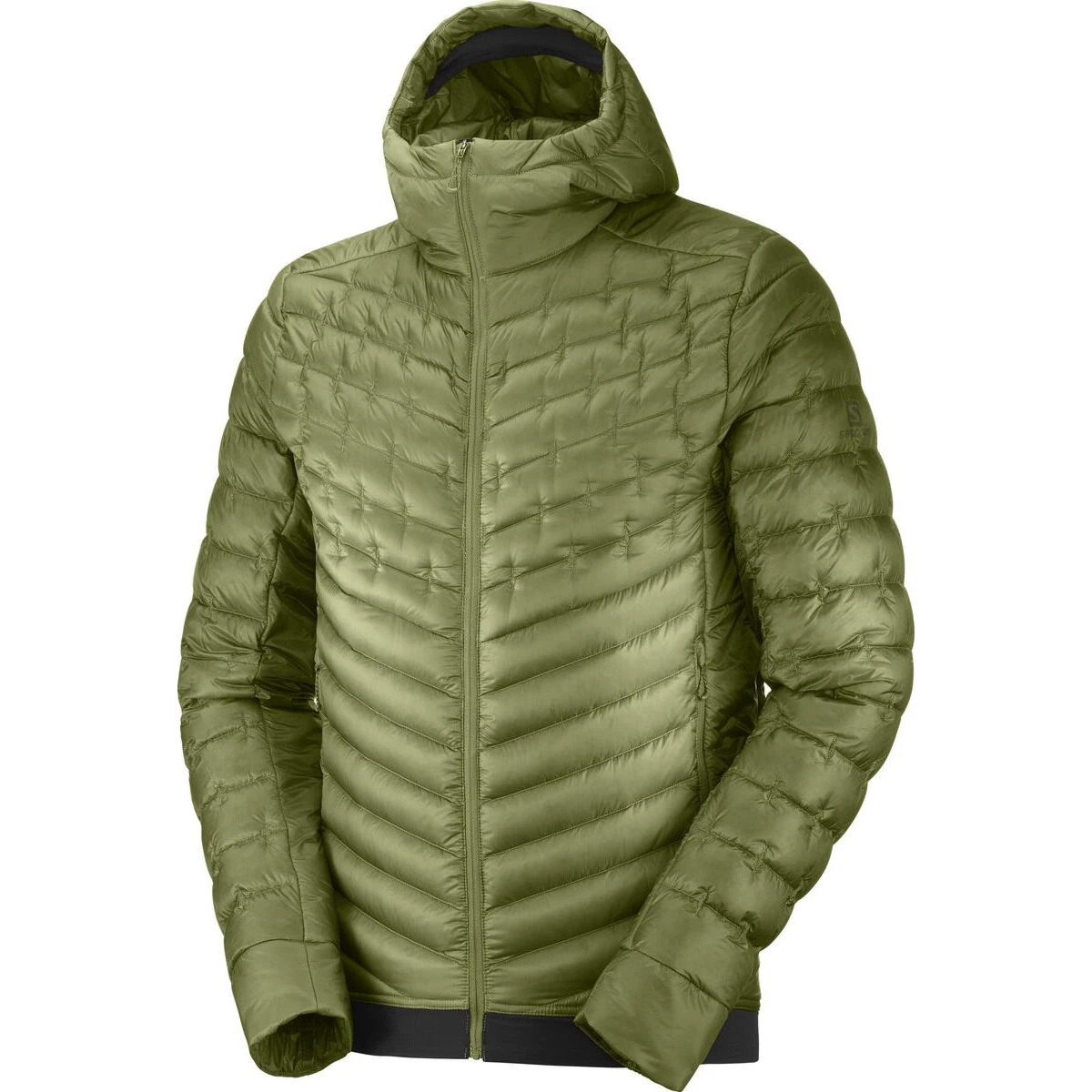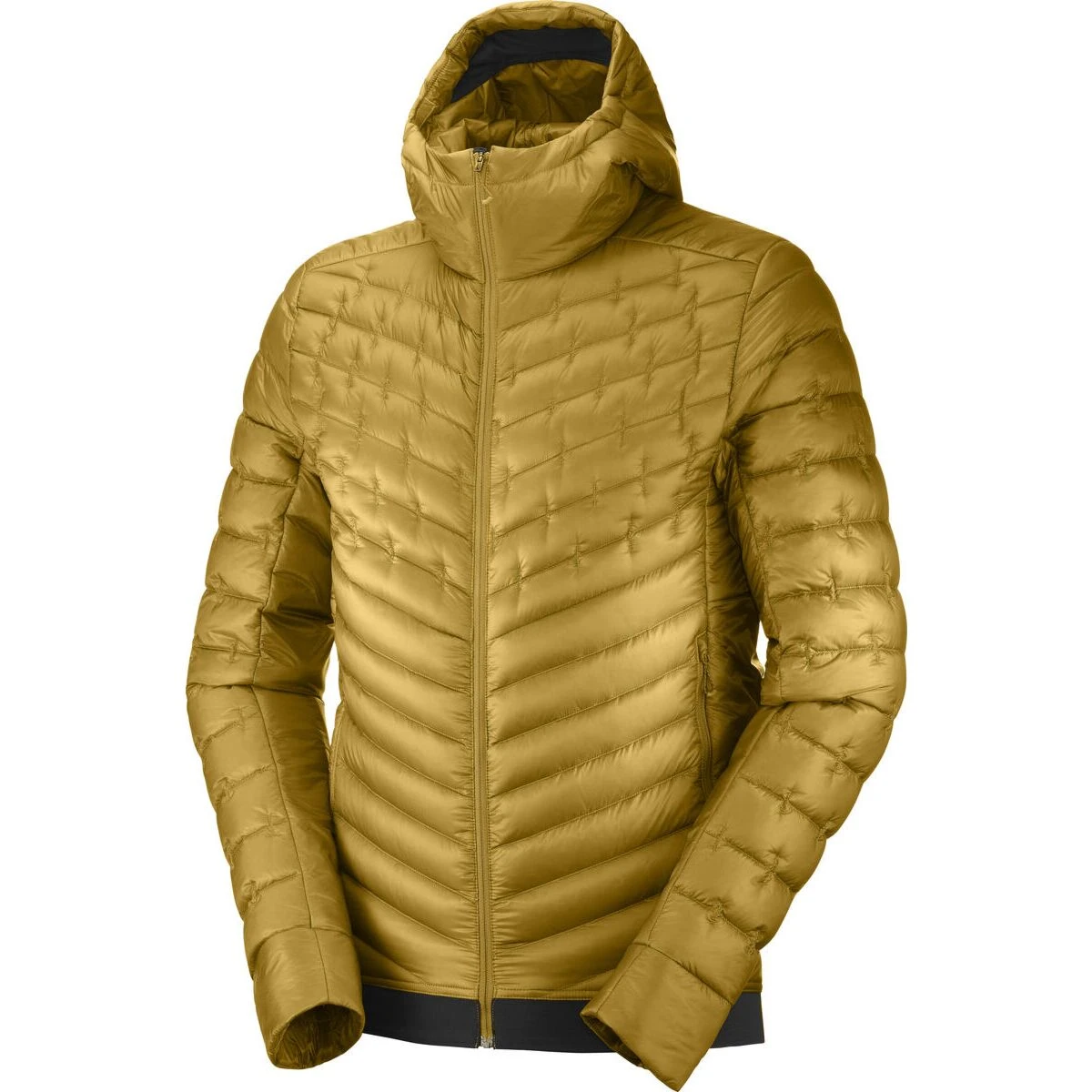 De Salomon Outline Down Hoodie voor heren combineert hoogwaardige materialen en innovatief design. Het ultra warme ganzendons wordt aangevuld met synthetische isolatie panelen op de plaatsen die het meest waarschijnlijk nat worden.