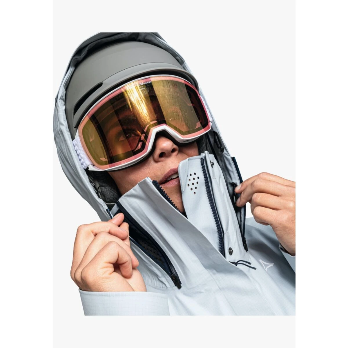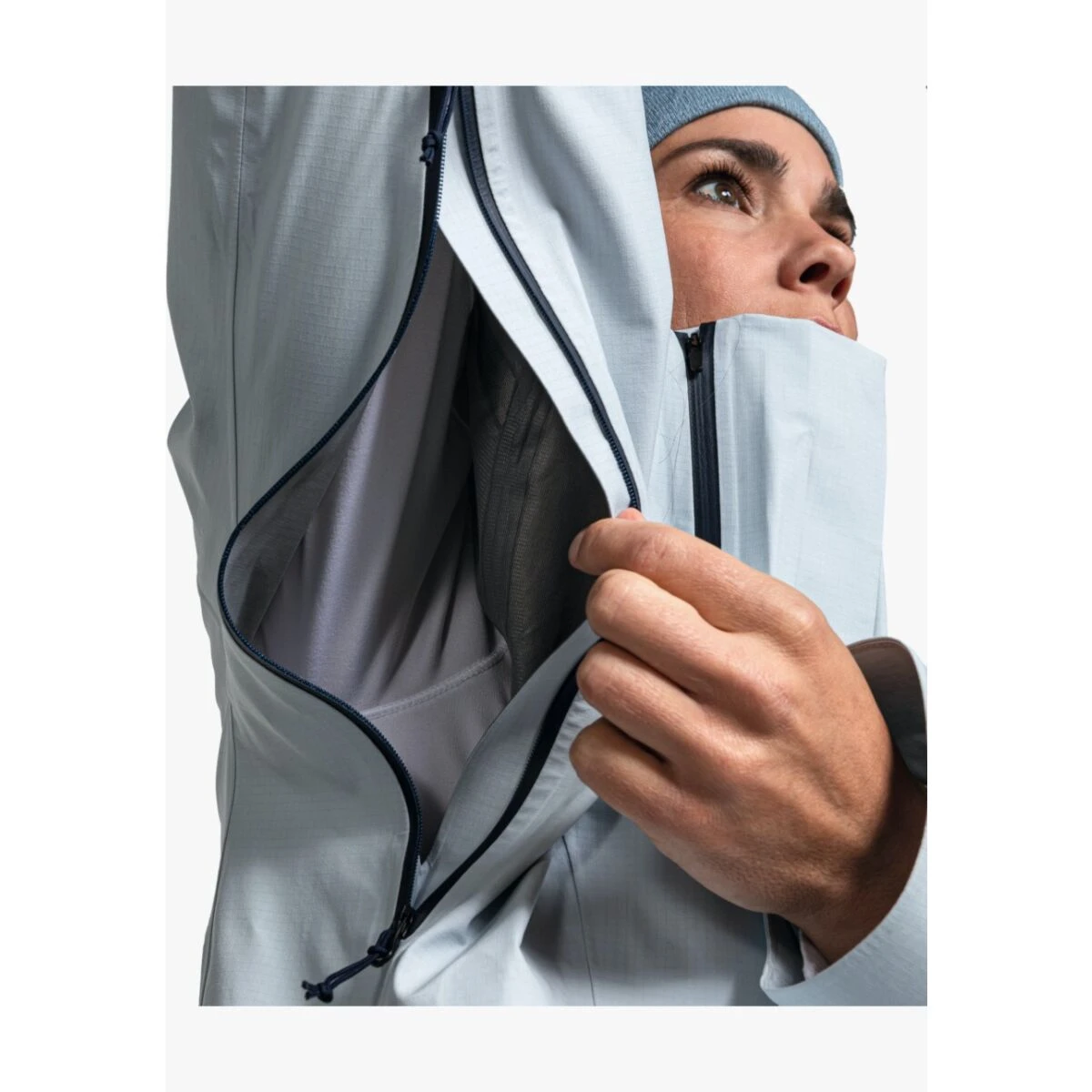 De Schöffel 3L Jacket Sass Moar voor dames heeft nieuwe eigenschappen op het gebied van lichaamsklimaat, de skitourjas van Schöffel heeft een innovatieve kraag, die werkt als airconditioning. De unieke ClimAir Collar voorkomt transpireren, omdat het systeem ervoor zorgt dat warme lucht via het mesh-materiaal direct naar buiten wordt getransporteerd en er alleen een heerlijk draaggevoel achterblijft.