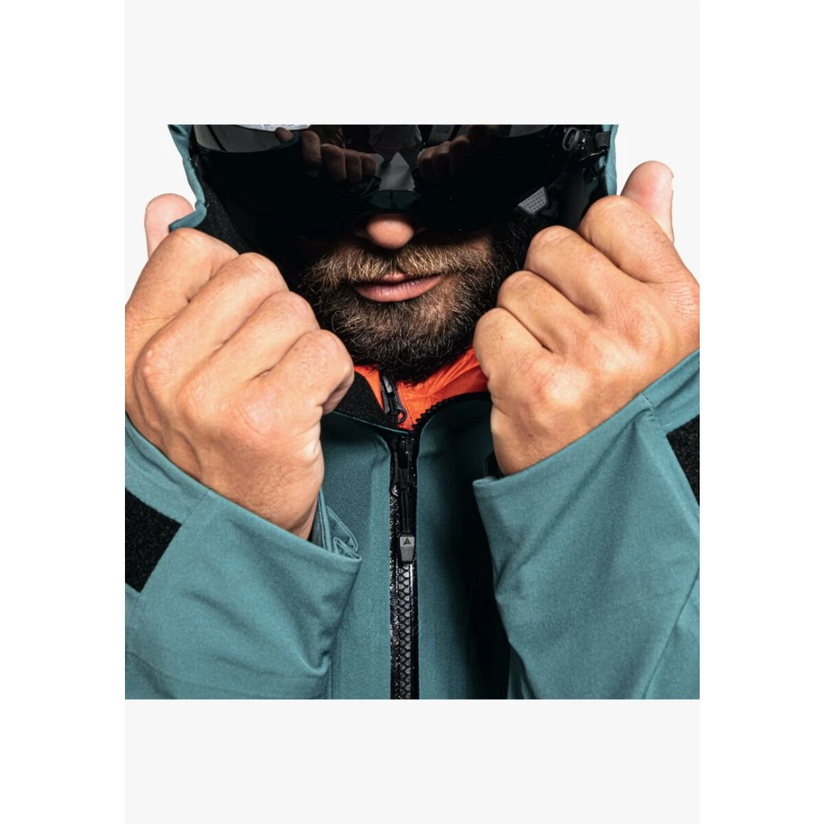 De Schöffel 3l Jacket La Grave is gemaakt van het 3L Dermizax® EV-membraan. Hierdoor is de jas blijvend waterdicht, winddicht en zeer goed ademend. Bovendien zijn de naden getaped om ze waterdicht te maken en water buiten te houden. De capuchon past over een helm zonder het zicht van de drager te belemmeren. De geïntegreerde onderarm ventilatie biedt individuele instelmogelijkheden en extra ventilatie op en buiten de piste. De vaste sneeuwvanger met siliconen band en de verstelbare mouwzomen met manchetten houden sneeuw buiten voor nog meer draagcomfort.