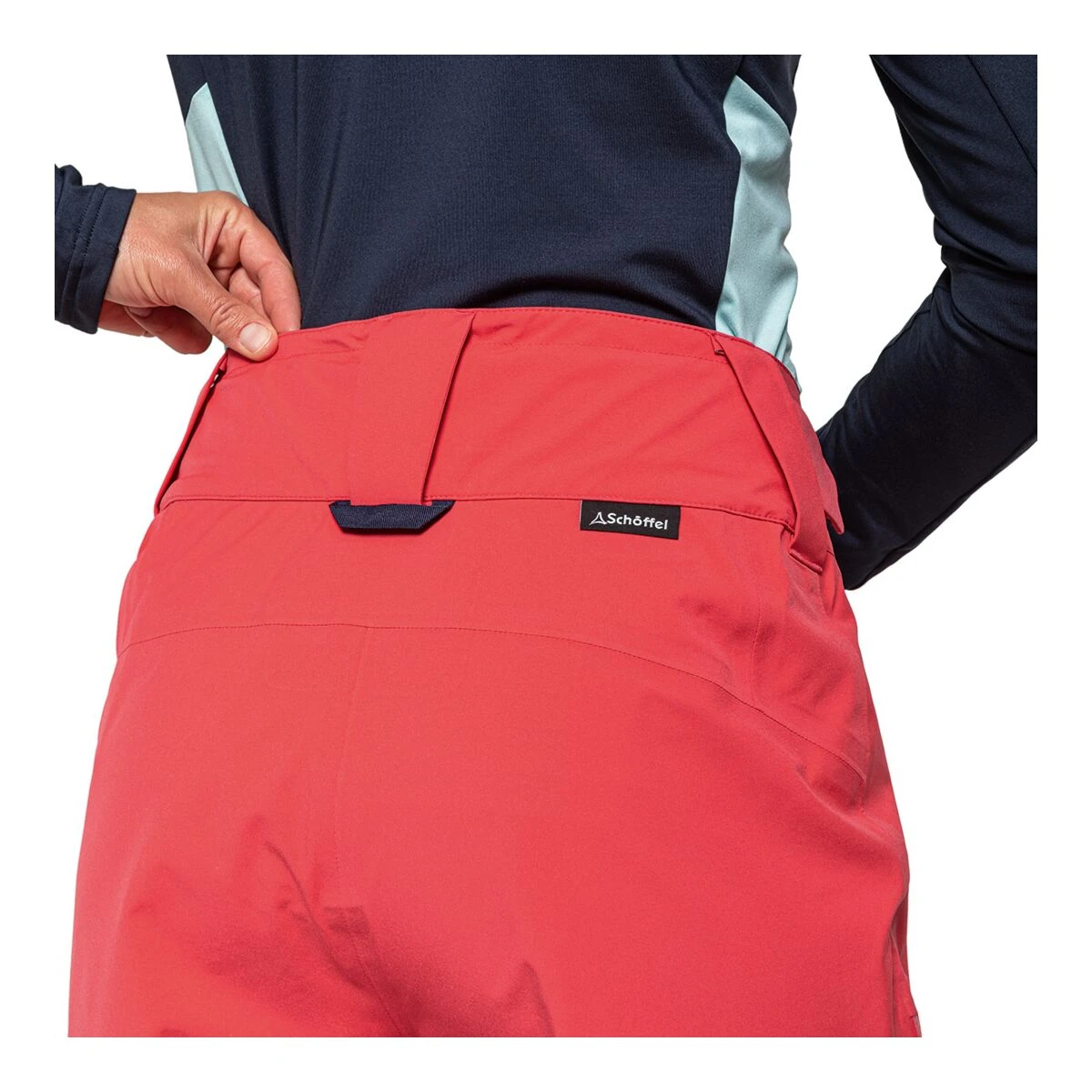 Schöffel 3L Pants La Grave voor dames is een waterdichte broek dankzij het Dermizax® EV-membraan dat tevens winddicht en ademend is. De broek heeft praktische functies zoals de Recco®-reflector die helpt bij het lokaliseren van de drager bij een ongeval, de dijbeenzak met ritssluiting, de sneeuw kap over de schoen en een speciale zak voor een lawinepieper.