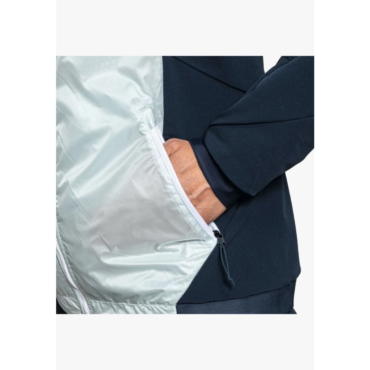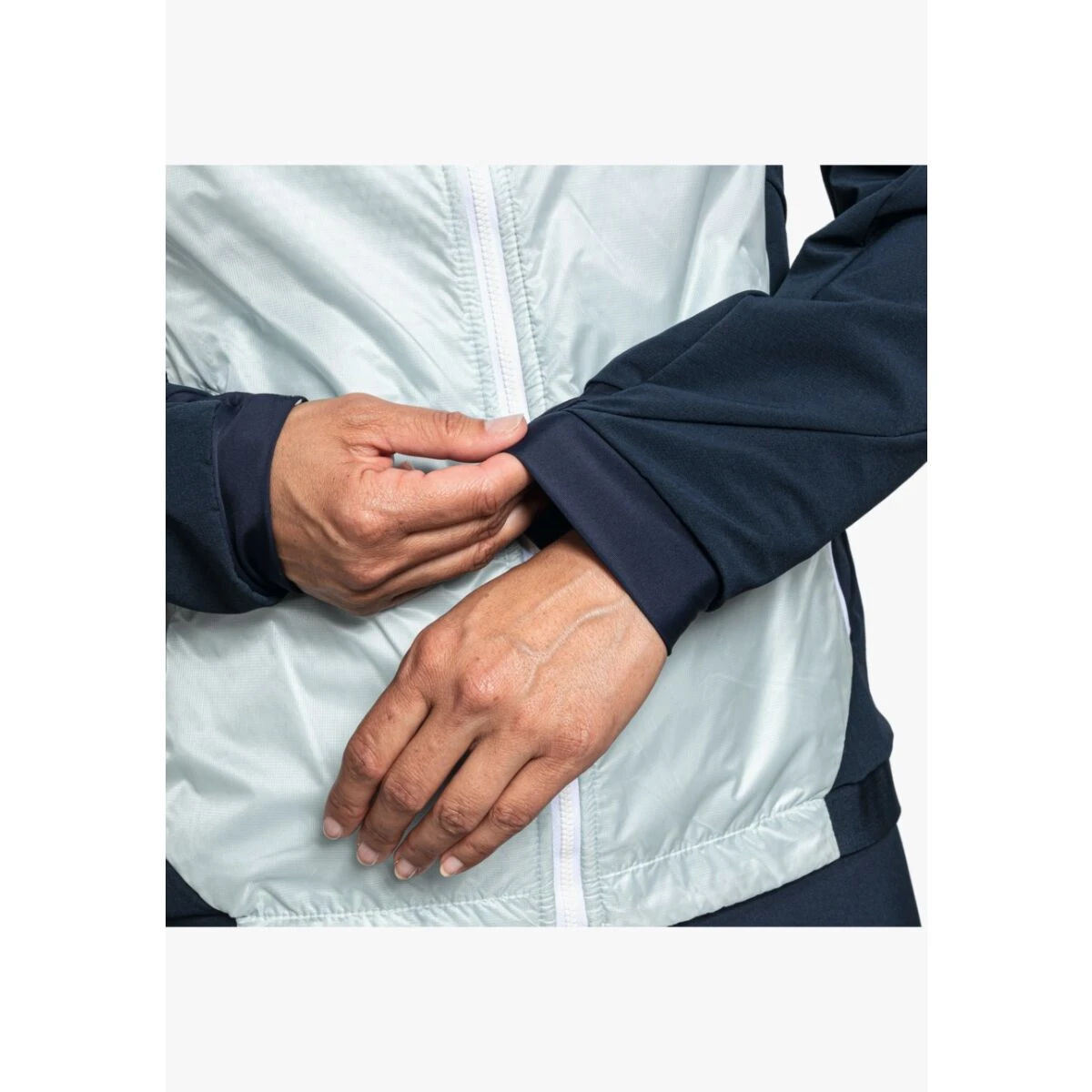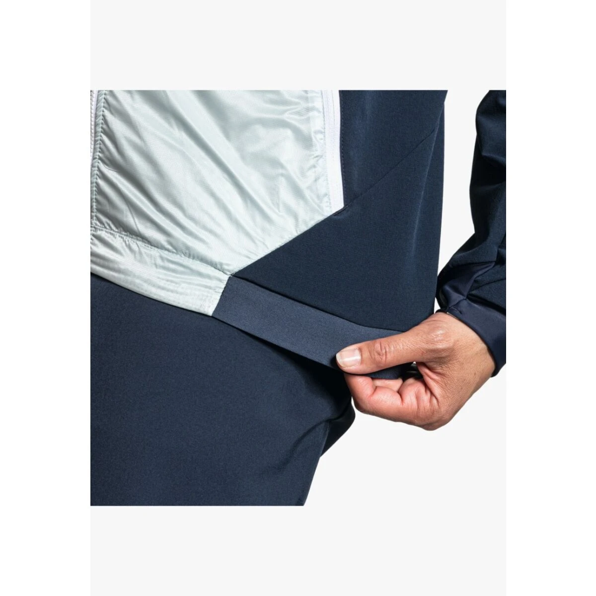 Deze Schöffel Hybrid Jacket Cima Mede voor dames is een echte lichtgewicht. Het is bijzonder aangenaam tijdens skitochten en is de perfecte metgezel voor elke beklimming en afdaling. Dankzij de 4D Body Mapping zijn het Pertex® Quantum en stretchmateriaal zo gecombineerd dat de waterafstotende jas aan de voorkant winddicht is en aan de achterkant een uitstekend ademend vermogen biedt. Hierdoor is er altijd het perfecte lichaamsklimaat, terwijl het draagcomfort superieur is. Het Schöffeljack biedt bovendien uitstekende bewegingsvrijheid en is extreem licht van gewicht. De materiaalmix van dit skitourjack droogt snel en zorgt voor een blijvend aangenaam draaggevoel.