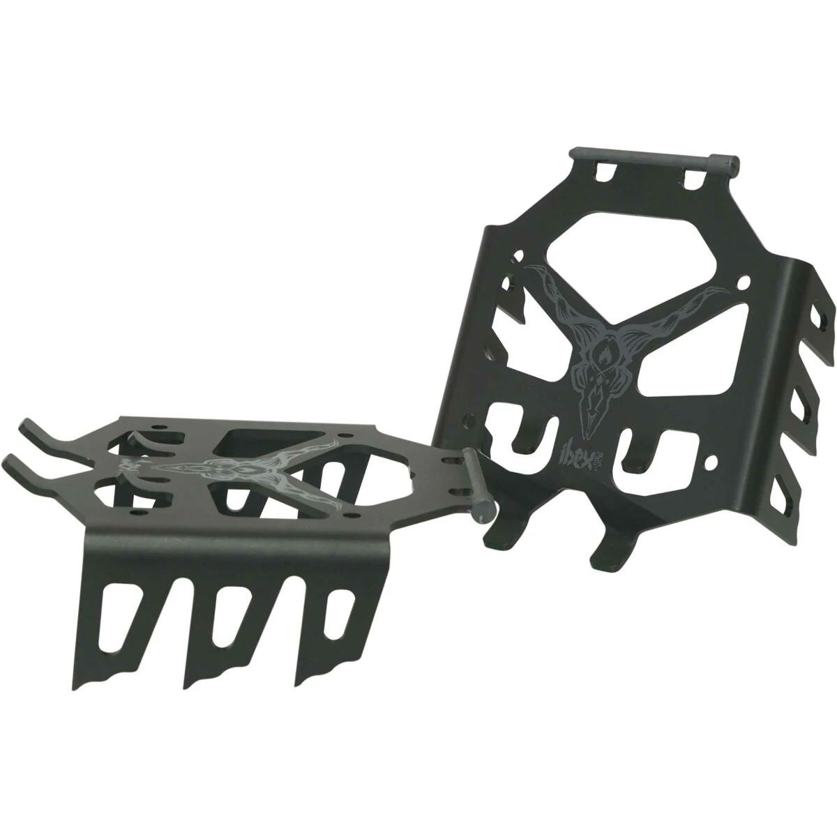 The Ibex ST maintains the same great shape and functionality as the original Ibex but has been upgraded with ST tech! Spark has replaced the brass axle with their overmolded thermoplastic allowing for effortless installation and super-smooth rotation. Crampon teeth are fully engaged when used with or without the whammy bar for maximum security on dicey terrain. Their dualwidth design features one crampon that is slightly wider than the other, allowing the crampons to nest together for easy handling and reduced packing space