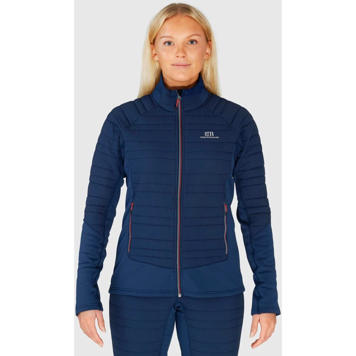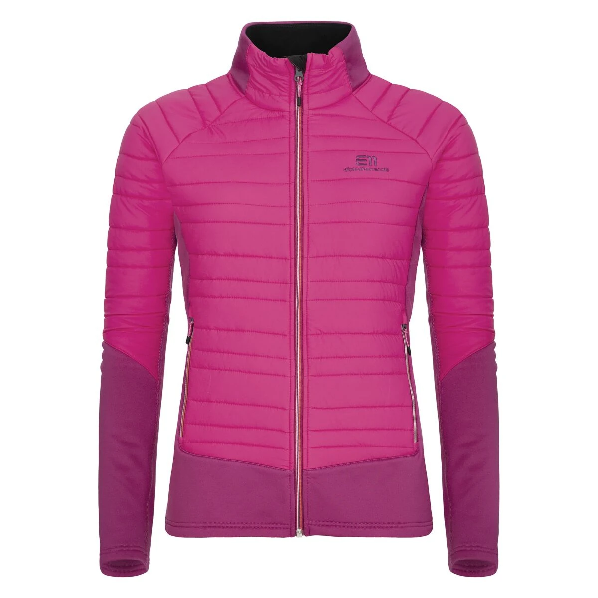 - Stretchfleece met gerecycled polyester in de mouwen en zijpanelen