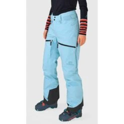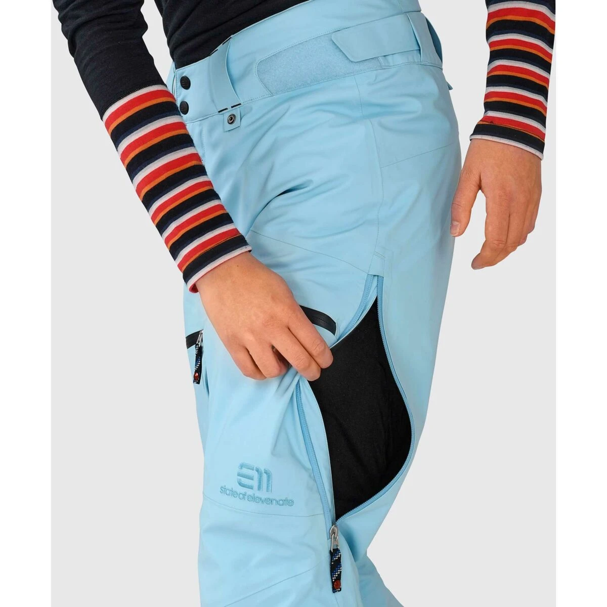 De State of Elevenate Pure Pant is gemaakt van het sterke 3-laags Gore-tex en houdt harde wind en neerslag op afstand. De binnenkant heeft een gladde flanelachtige liner die een beetje extra warmte en comfort toevoegt. Het ontwerp is strak met focus op essentiële zaken, zoals de 2 way ventilatie ritsen aan de zijkanten en een zak voor het opbergen van je lawinepieper. De onderbenen hebben rondom versterking tegen scherpe randen. De broek heeft een geweldige pasvorm, met een hoge taille en voorgevormde knieën.