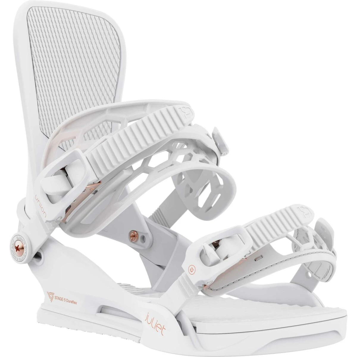 All-day comfort with enough control to enjoy the entire resort. De Union Juliet is de perfecte introductie tot de categorie van all-mountainbindingen. Alles wat je zou verwachten van een all-mountain binding met Union’s bombproof eigenschappen. Of je nu ’s ochtends strakke bochten op de gladgestreken pistes wilt maken of aan het einde van de dag door de slush moet ploeteren, de Juliet slaat je overal doorheen. Voor de beginnende tot gevorderderde boarder die op elk gebied vooruitgang wil boeken.