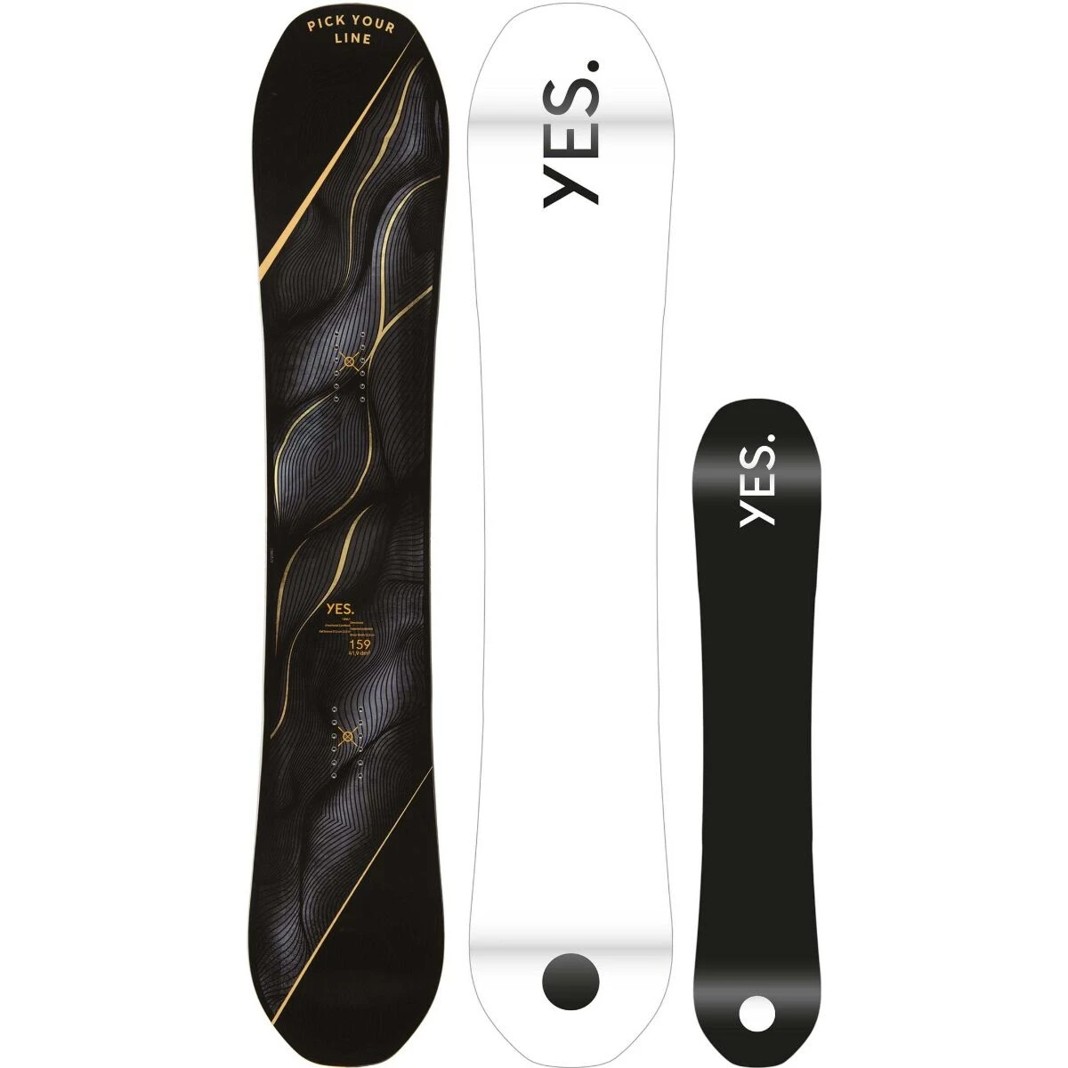 De Yes Pick Your Line is een tapered directional die heel anders rijdt dan andere tapered snowboards. De PYL maakt gebruik van Tapered Underbite. Je zal je verbazen hoeveel grip dit board heeft in hangende bochten. Door de steeds korter wordende radius beland je in een geheel nieuwe dimensie. Rijd je surfy of juist agressief, ‘pick your line’, dit board wijkt niet van zijn lijn.